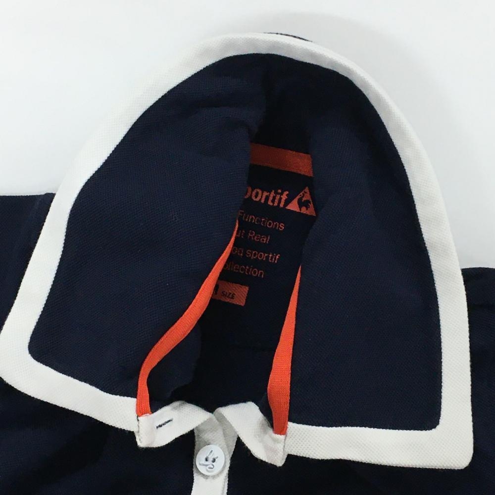 【美品】ルコックゴルフ 半袖ポロシャツ ネイビー×白 パイピング レディース M ゴルフウェア le coq sportif