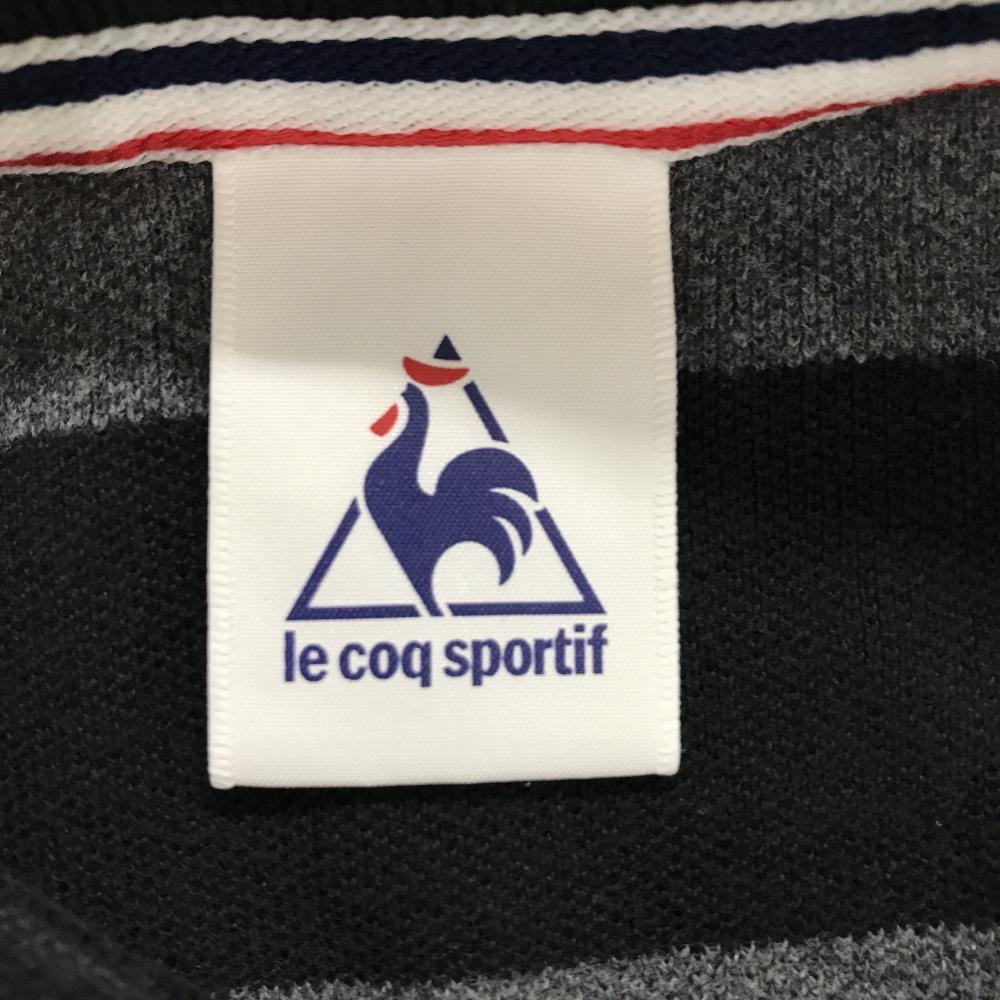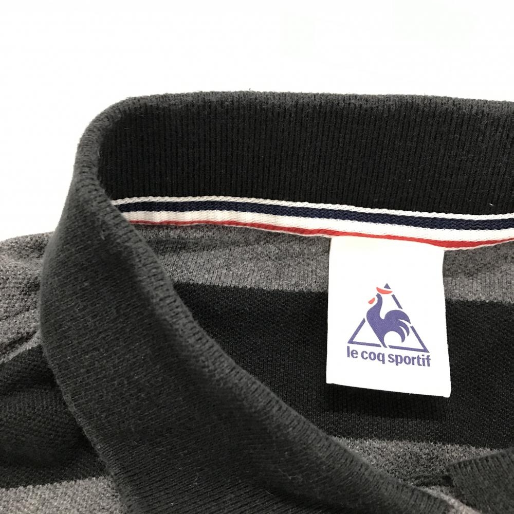 ルコック 半袖ポロシャツ 黒×ネイビー ボーダー コットン混 レディース L ゴルフウェア le coq sportif