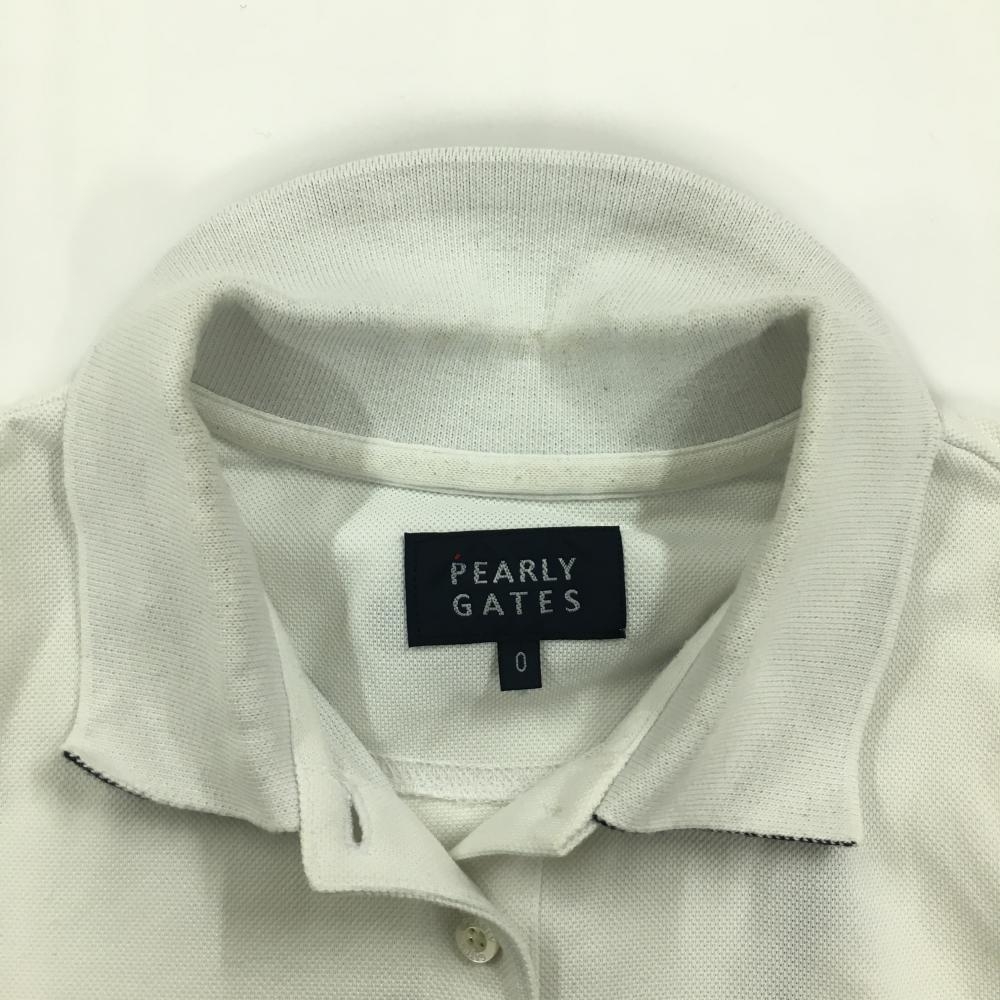 パーリーゲイツ 半袖ポロシャツ 白×ネイビー フロントロゴ レディース 0(S) ゴルフウェア PEARLY GATES