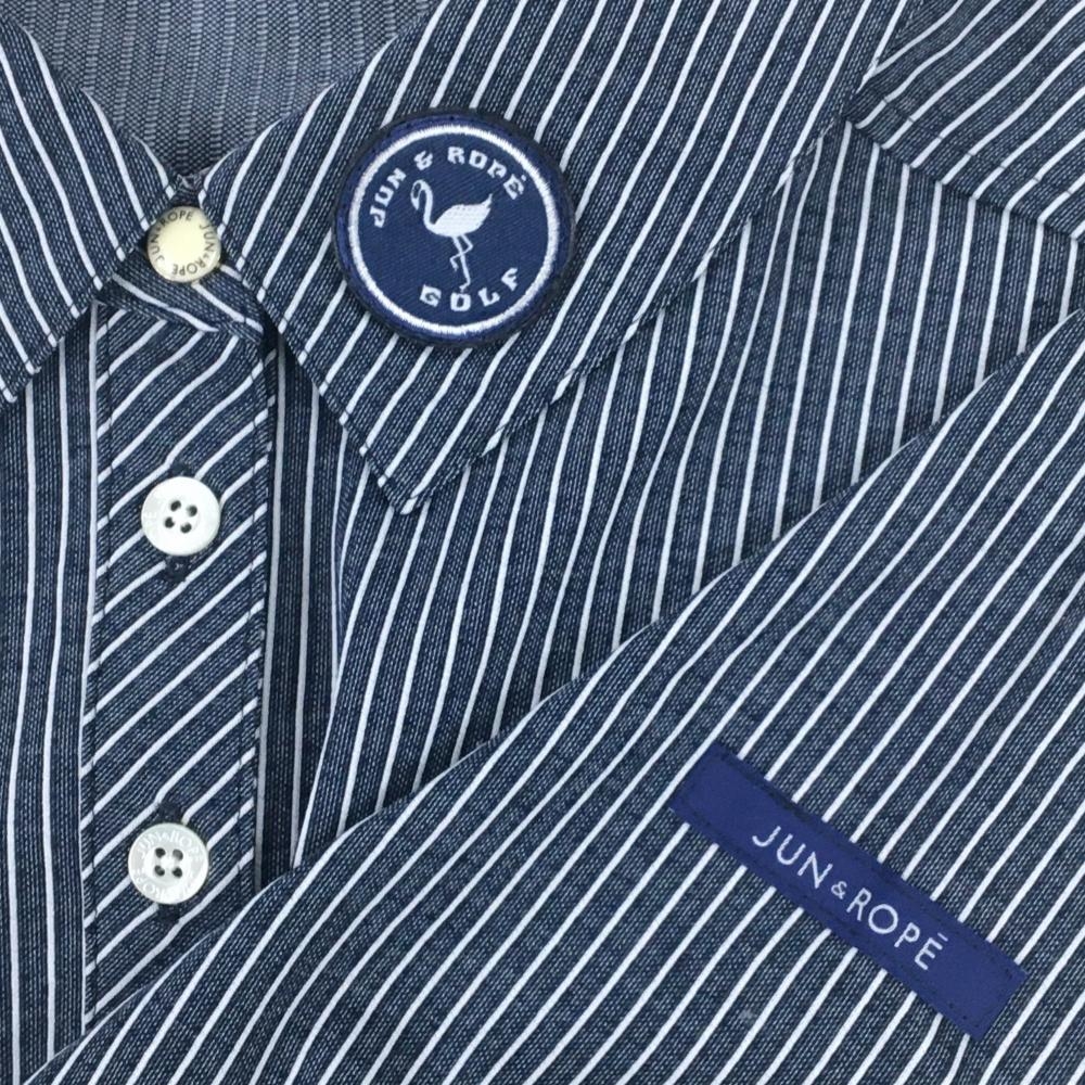 【新品】ジュンアンドロペ 長袖ポロシャツ ネイビー×白 ストライプ レディース F ゴルフウェア サンプル品 JUN&ROPE
