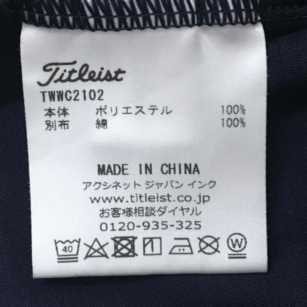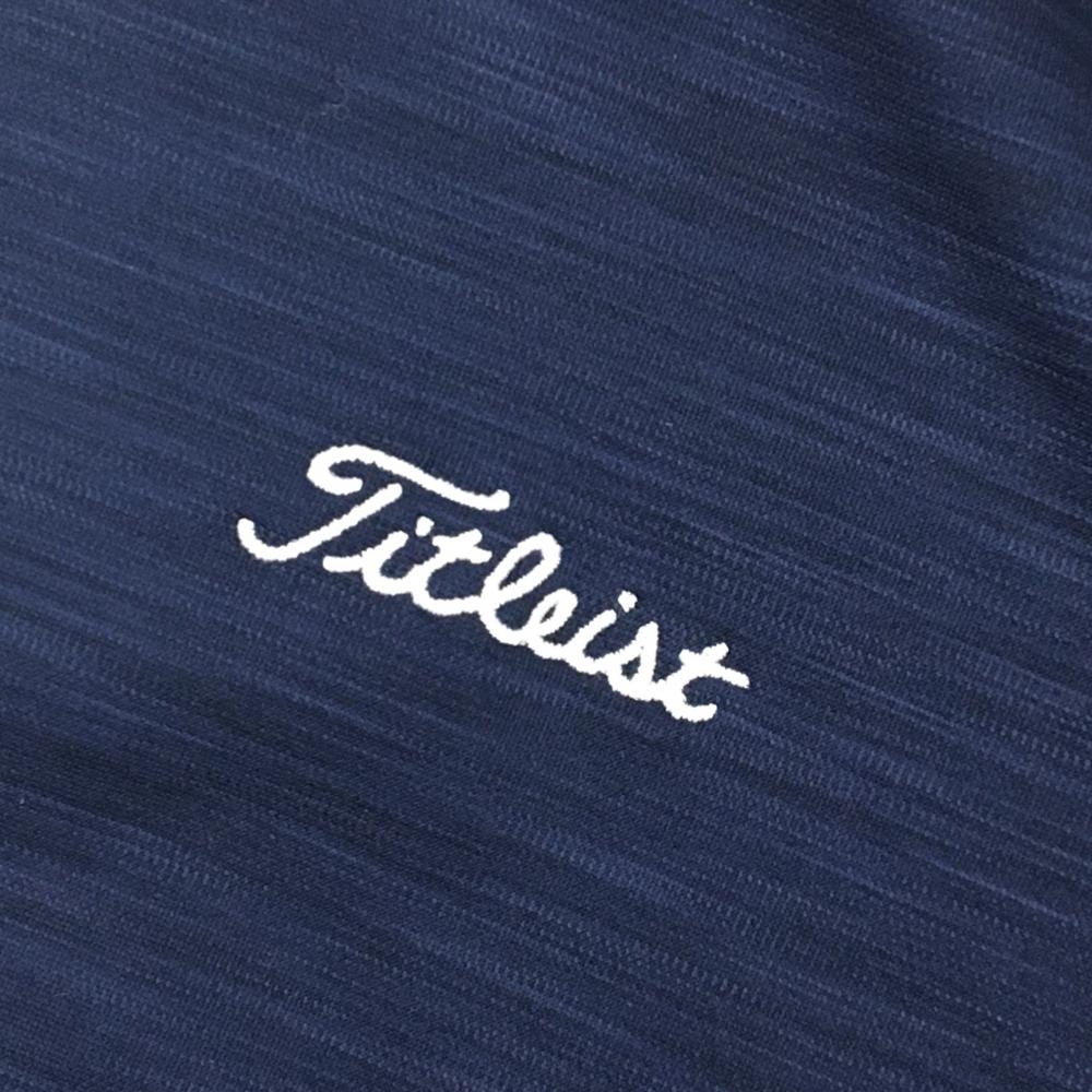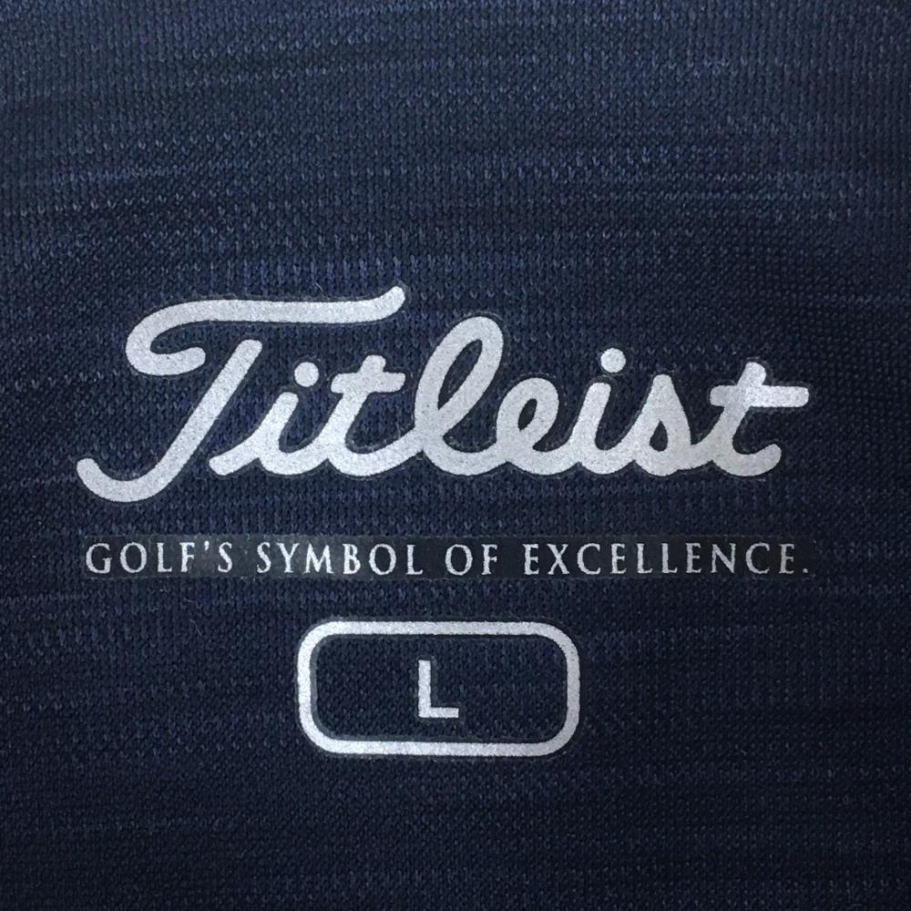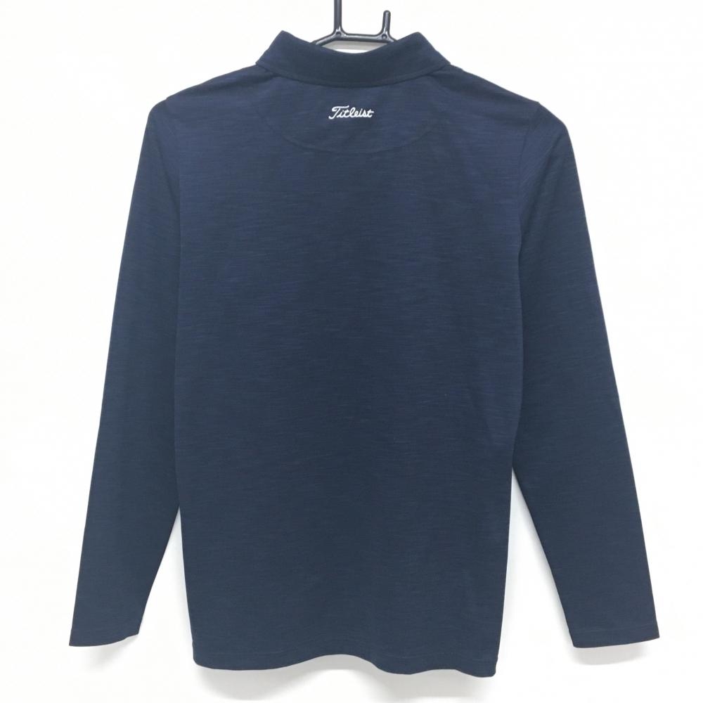 【美品】タイトリスト 長袖ポロシャツ 杢ネイビー×白 スナップボタン ロゴ刺しゅう レディース L ゴルフウェア TITLEIST