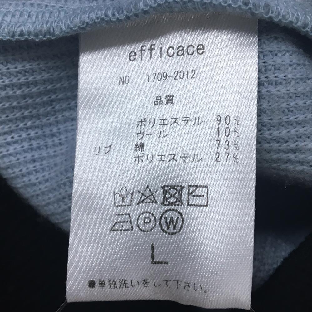 【美品】エフィカス ニットカーディガン ライトブルー×黒 ワッペン レディース L ゴルフウェア efficace