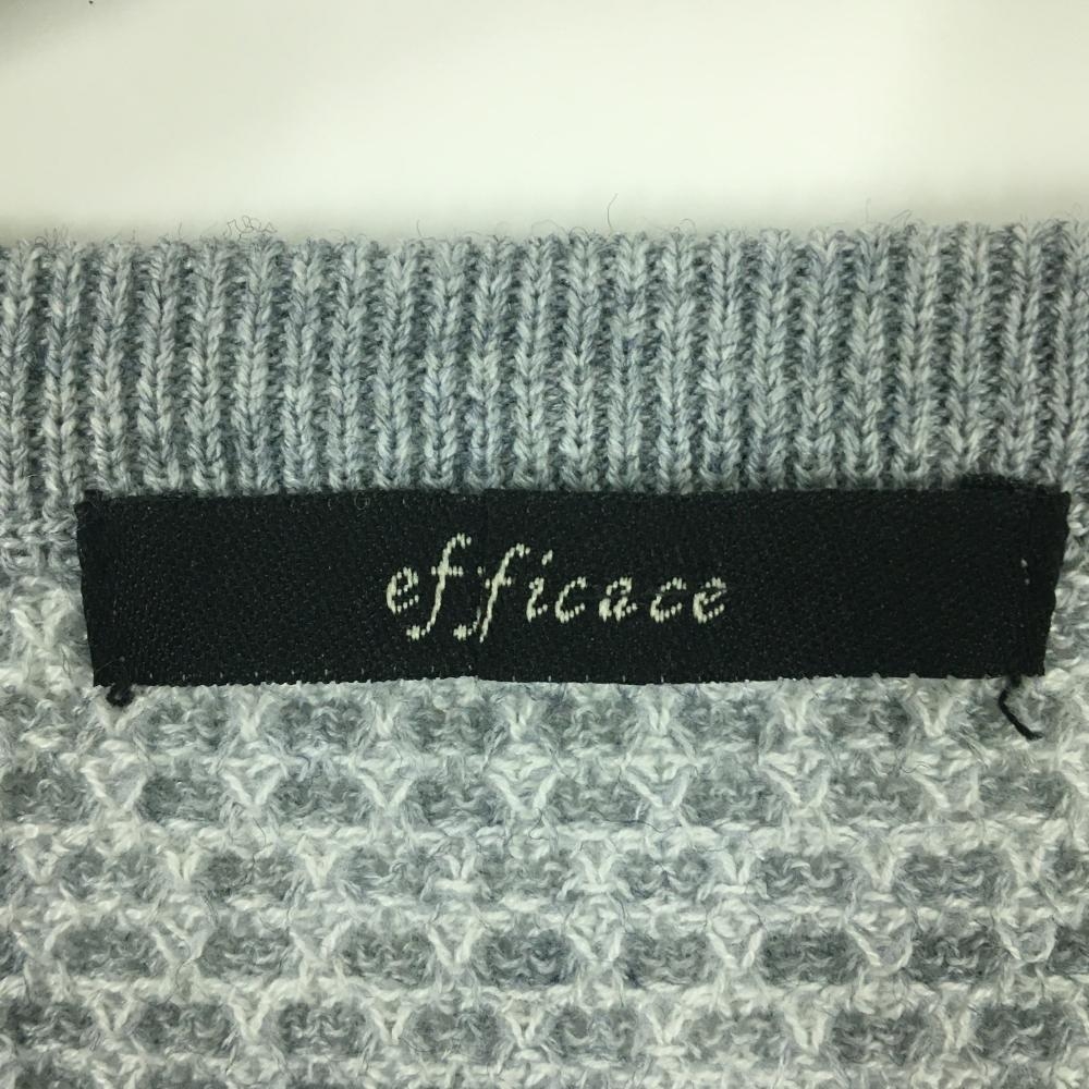 【超美品】エフィカス セーター グレー×白 Vネック 胸ポケット ニット レディース M ゴルフウェア efficace