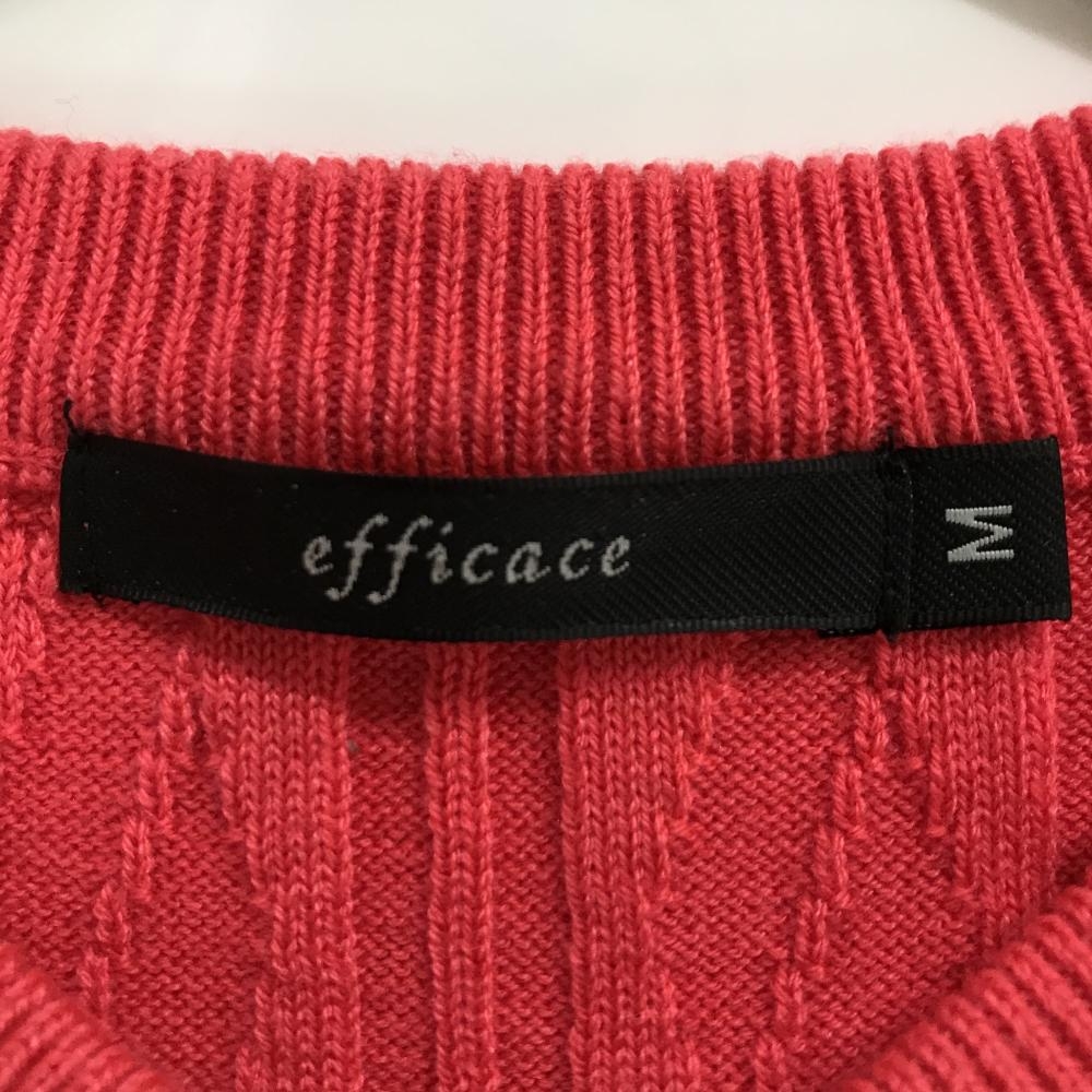 【美品】エフィカス セーター レッドオレンジ Vネック ニット レディース M ゴルフウェア efficace