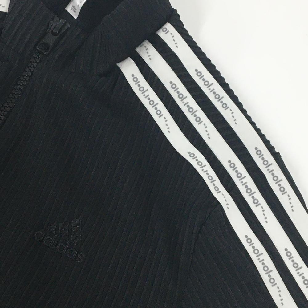 【超美品】アディダス ジャケットブルゾン 黒×白 袖3ライン 凹凸生地 レディース M ゴルフウェア adidas