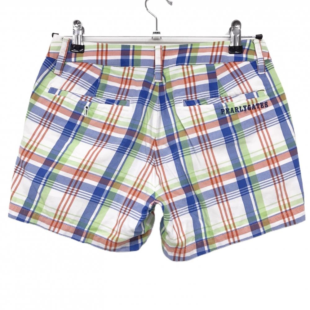 パーリーゲイツ ショートパンツ 白×ブルー×オレンジ チェック コットン100% レディース 0(S) ゴルフウェア PEARLY GATES