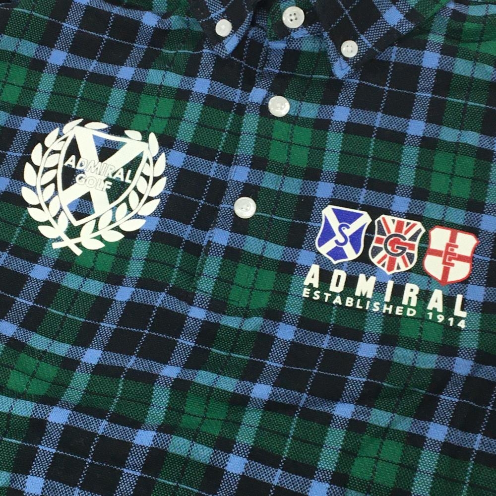 【美品】アドミラル 半袖ポロシャツ ネイビー×グリーン チェック ボタンダウン バックロゴ メンズ M ゴルフウェア Admiral