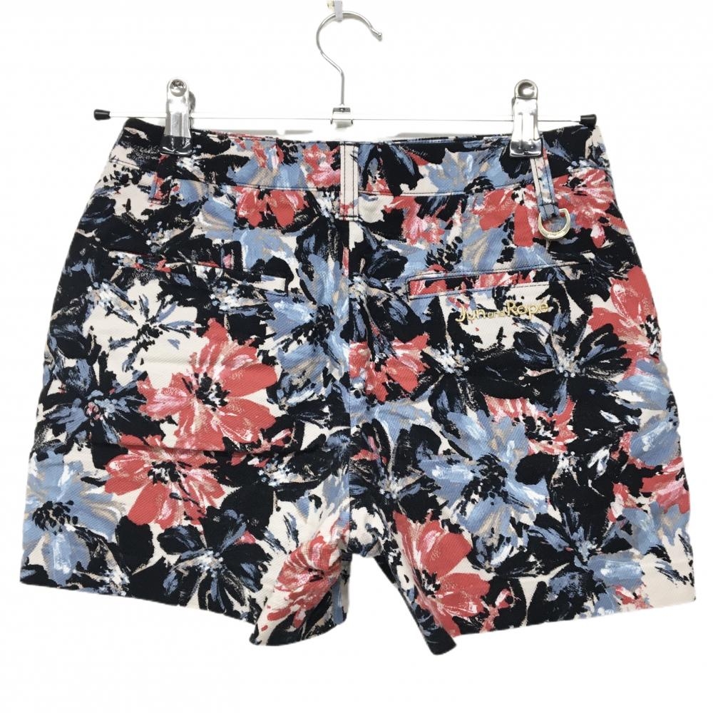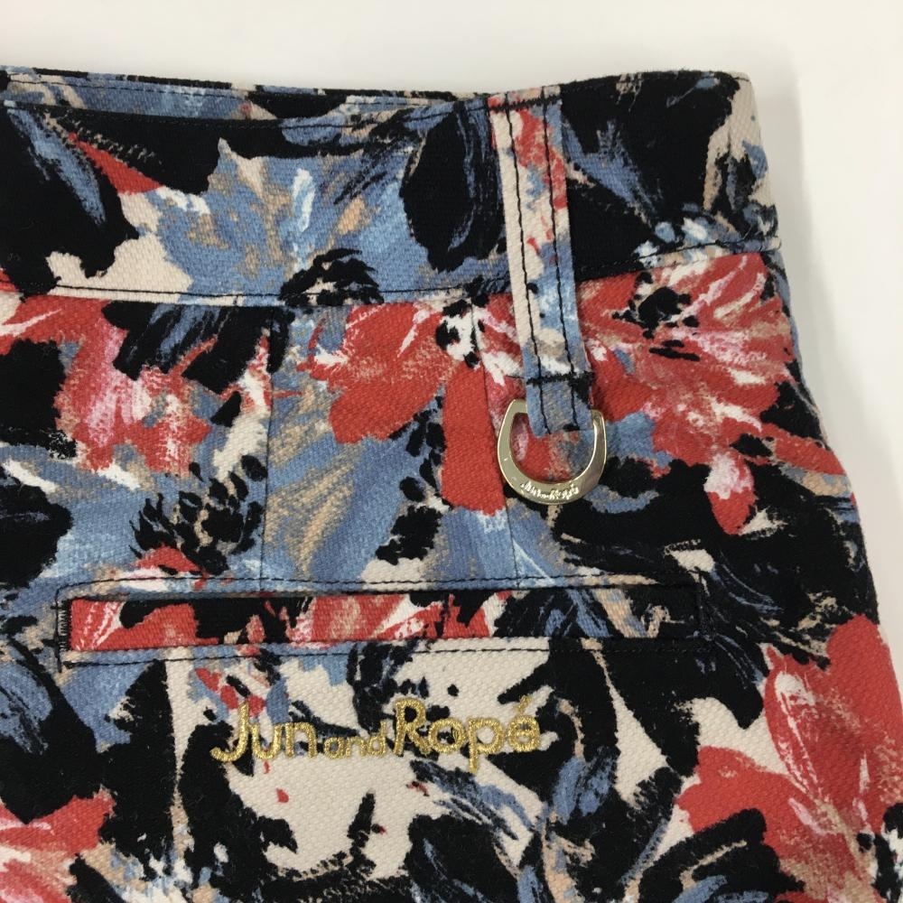 【美品】ジュンアンドロペ ショートパンツ 黒×ライトブルー×レッド 花柄 ストレッチ レディース S ゴルフウェア JUN&ROPE