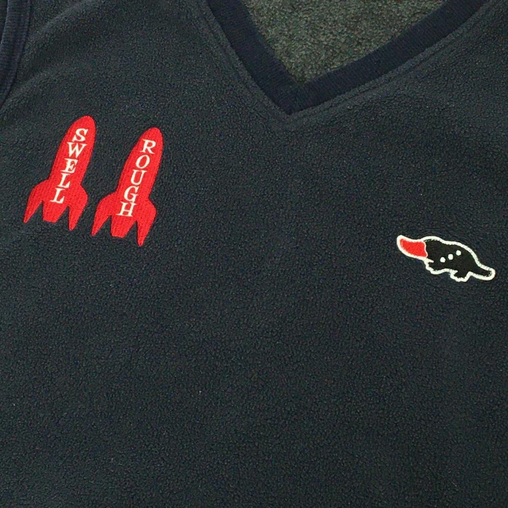 ラフアンドスウェル フリースベスト ネイビー×グレー ロケット刺しゅう メンズ M ゴルフウェア rough&swell