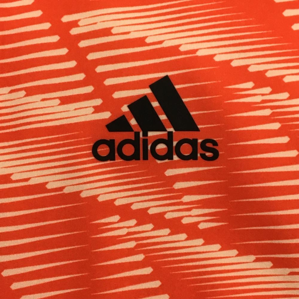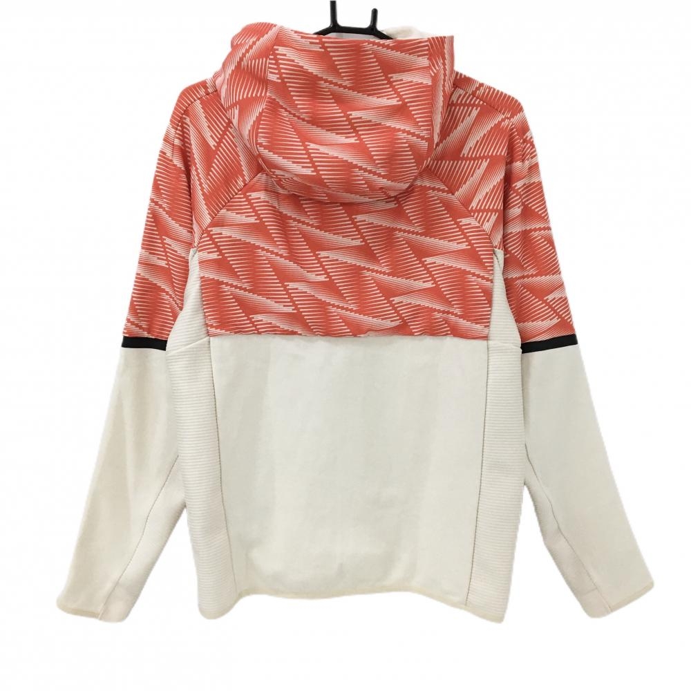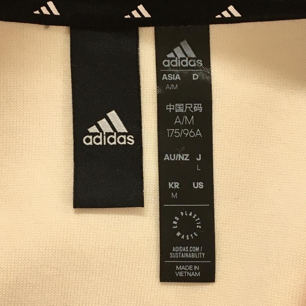 【美品】アディダス ジップパーカー アイボリー×レッド 上部総柄 ロゴプリント メンズ L ゴルフウェア adidas