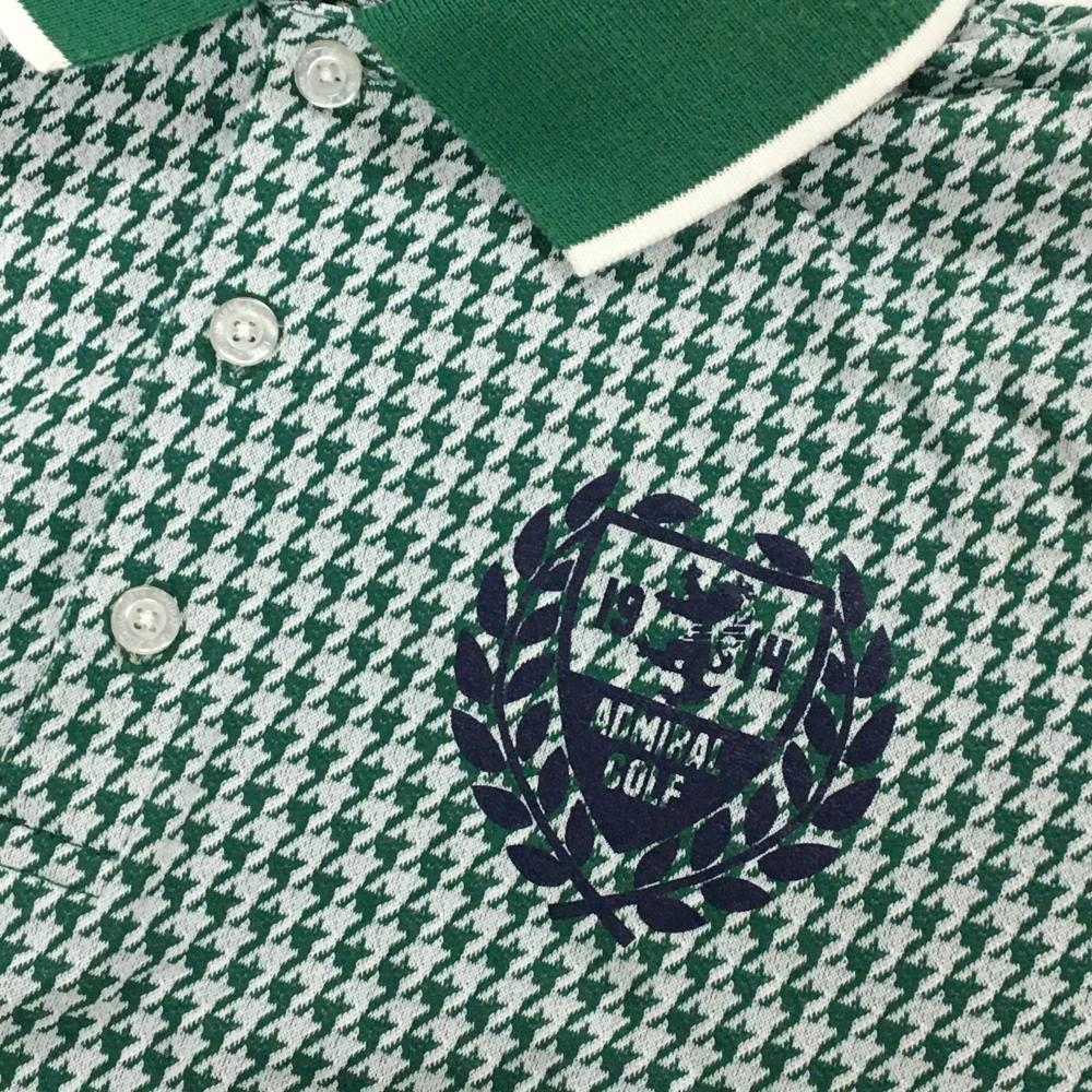 【美品】アドミラル 半袖ポロシャツ グリーン×白 千鳥格子 ロゴ メンズ M ゴルフウェア Admiral