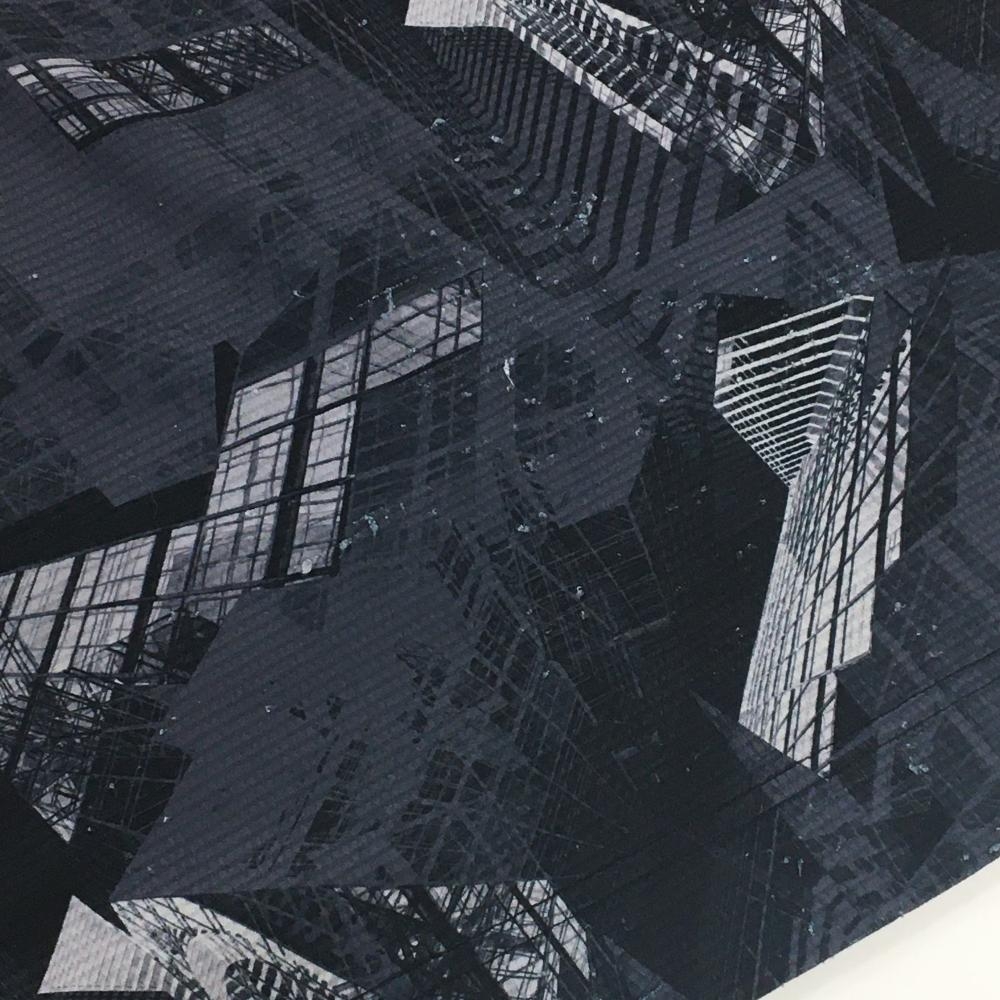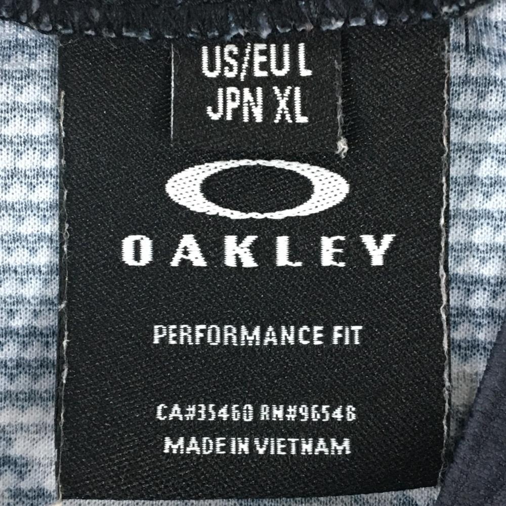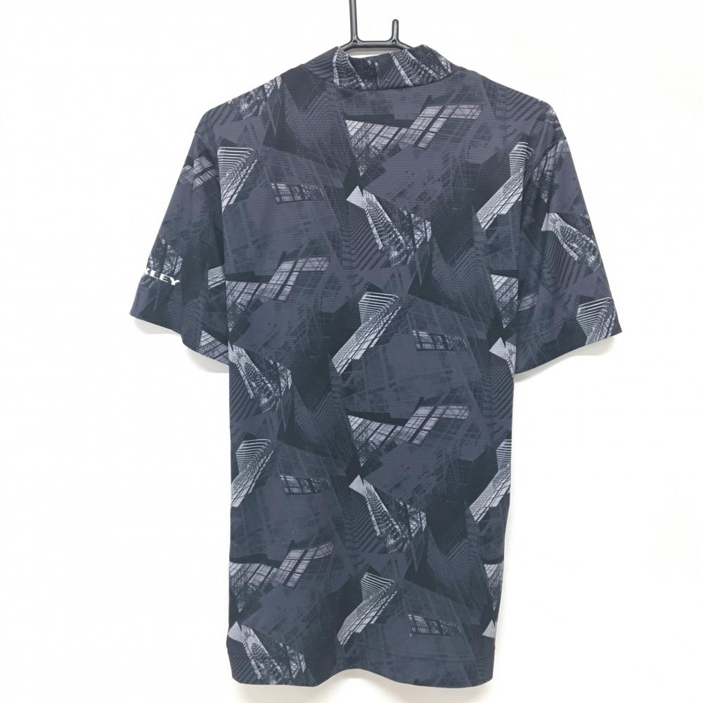 オークリー 半袖ハイネックシャツ ダークグレー×黒 総柄 ロゴ刺しゅう メンズ XL ゴルフウェア Oakley