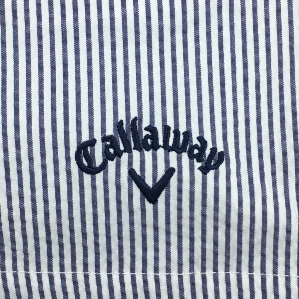 【超美品】キャロウェイ ハーフパンツ 白×ネイビー ストライプ サッカー生地 裏地メッシュ レディース M ゴルフウェア Callaway