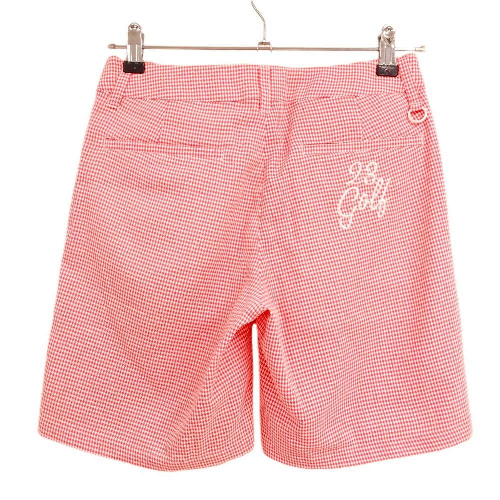 【超美品】23区ゴルフ ハーフパンツ 白×レッドピンク 総柄 バックロゴ刺しゅう レディース 61(S) ゴルフウェア 23区