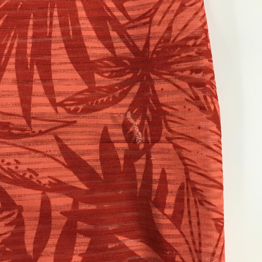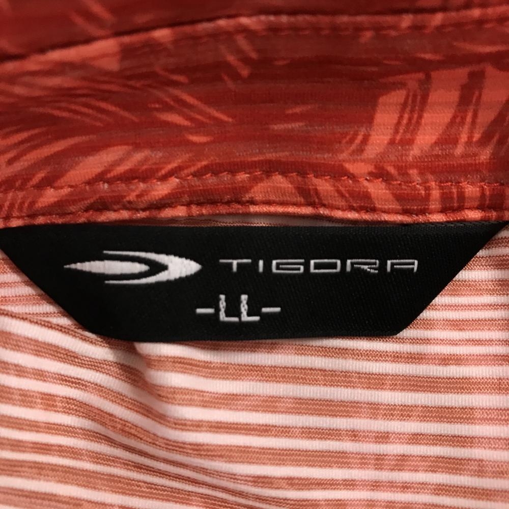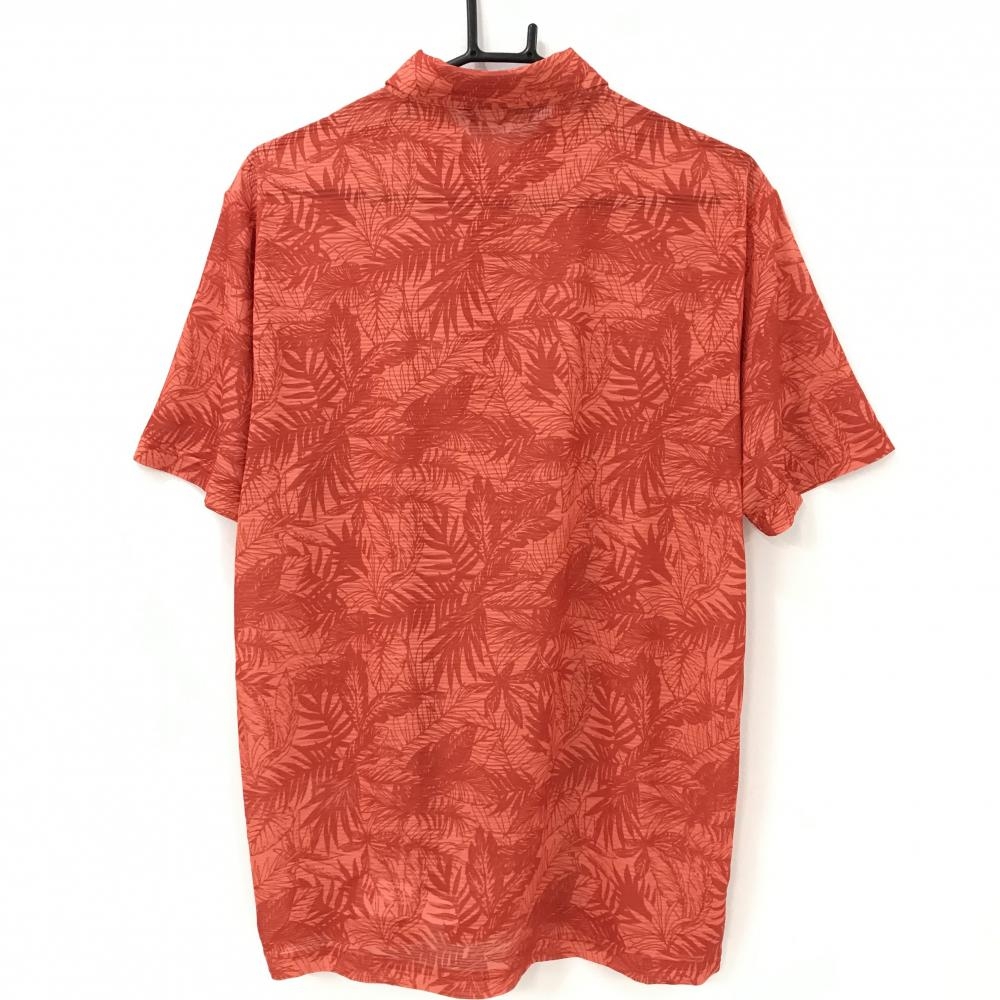 ティゴラ 半袖ポロシャツ ライトオレンジ×レッドオレンジ系 総柄 リーフ 胸ロゴ メンズ LL ゴルフウェア TIGORA