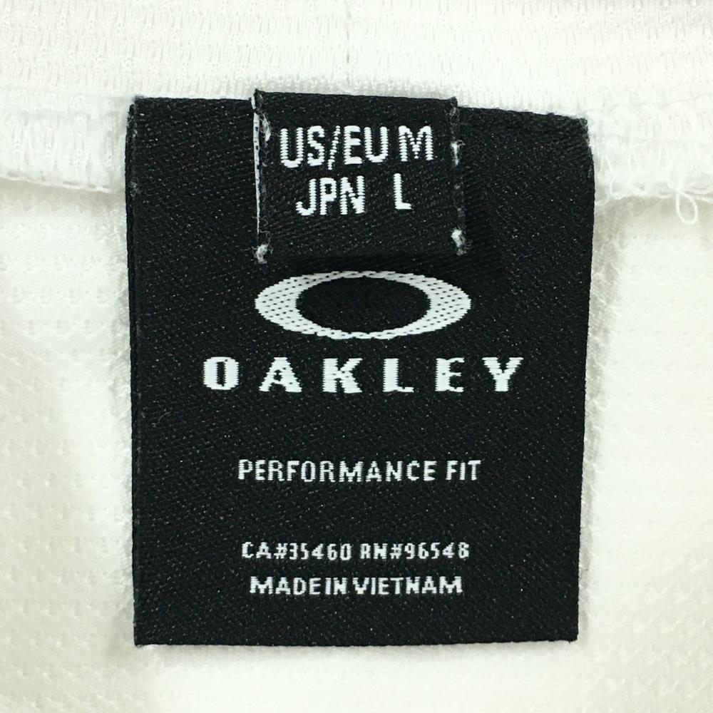 【超美品】オークリー 半袖ハイネックシャツ 白×カーキ 袖下・サイド総柄 ロゴ刺しゅう メンズ L ゴルフウェア Oakley