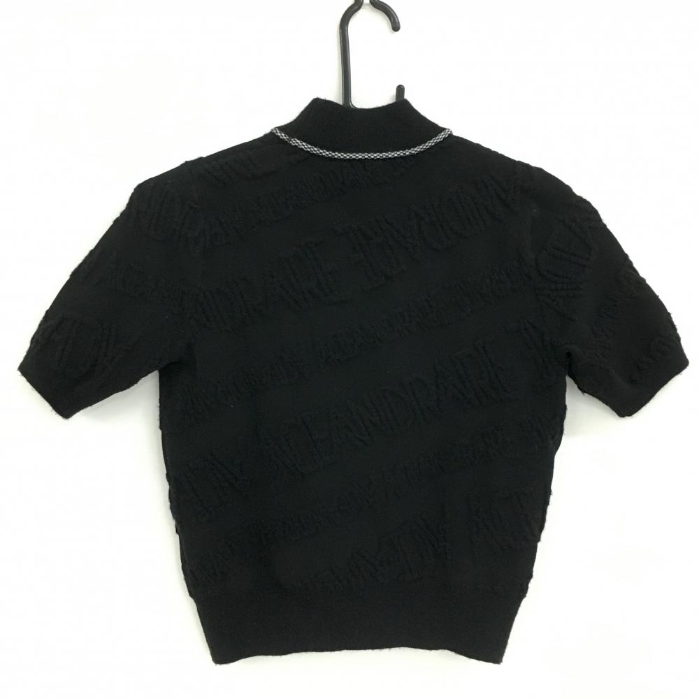 【美品】エースアンドレア 半袖ハイネックセーター 黒 ロゴ総柄織生地 レディース 158T ゴルフウェア ACEANDRARE