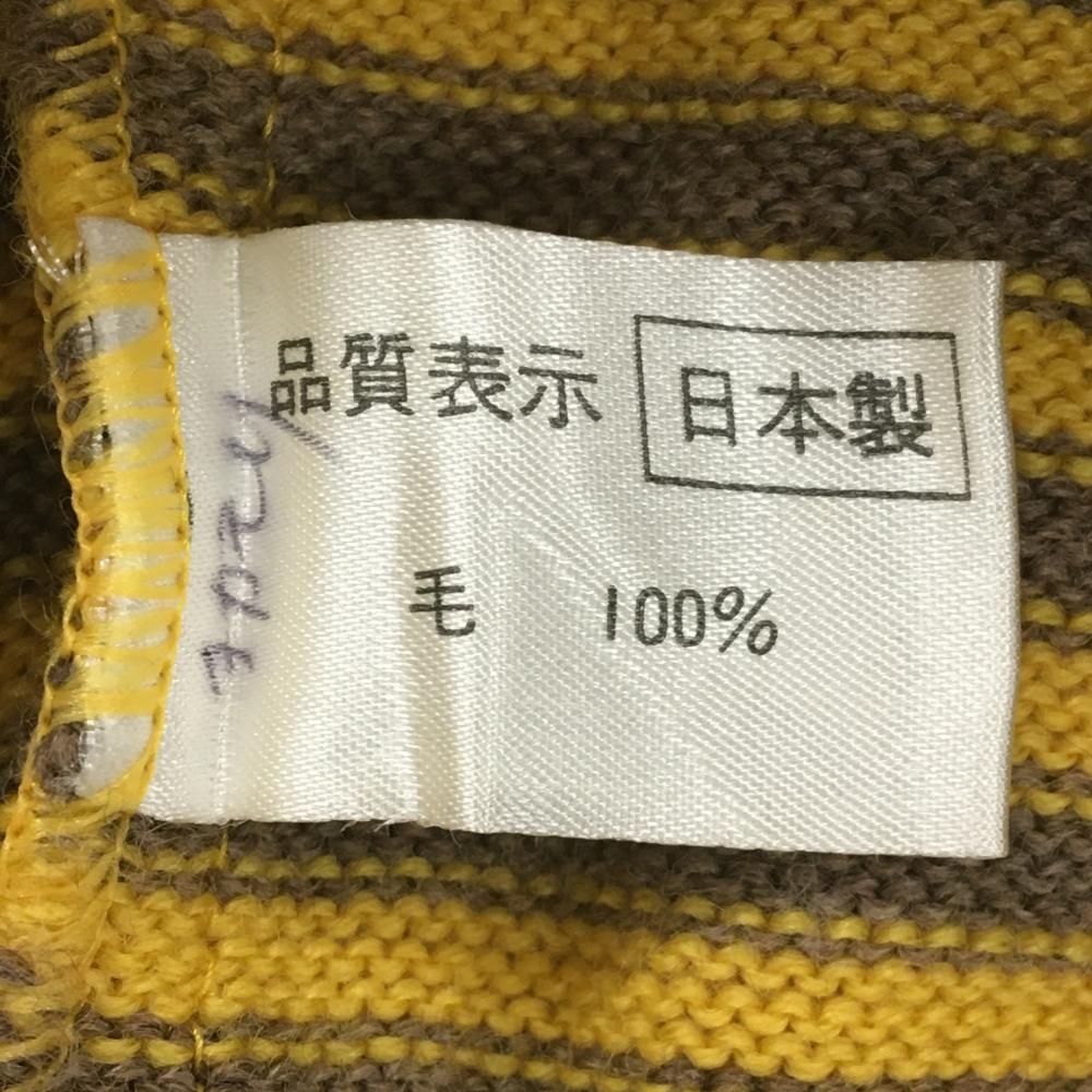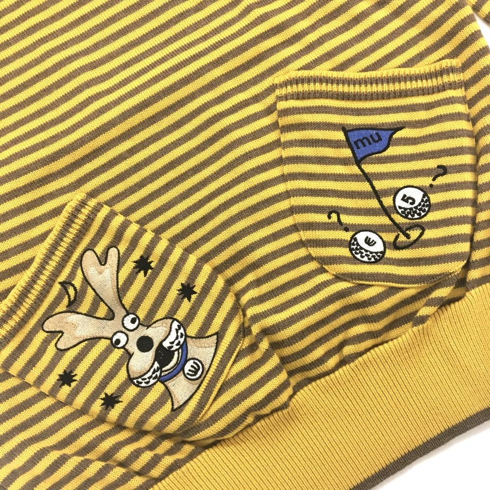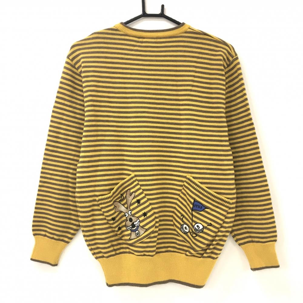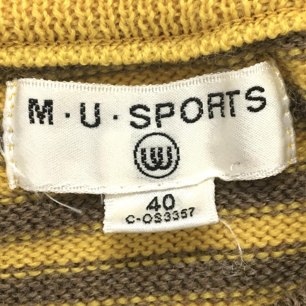 【美品】MUスポーツ セーター イエロー×ブラウン ボーダー 後ろポケット ニット レディース 40(M) ゴルフウェア M・U SPORTS