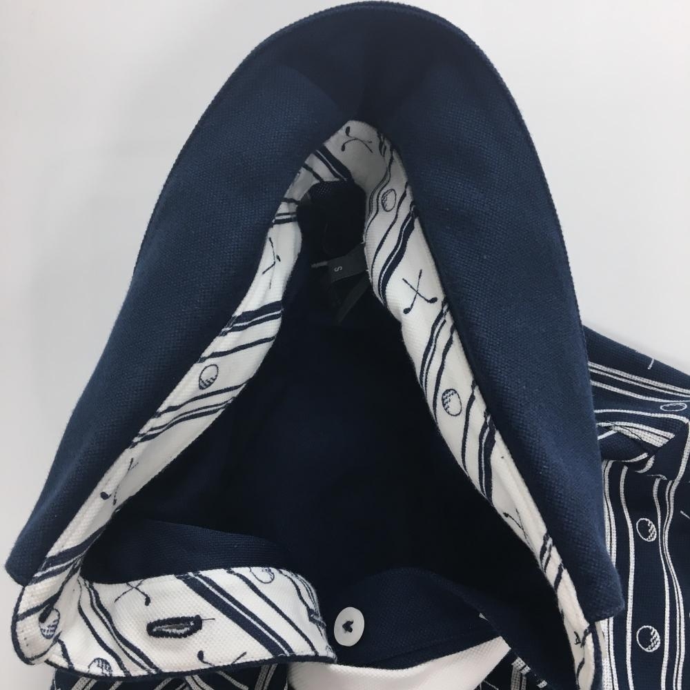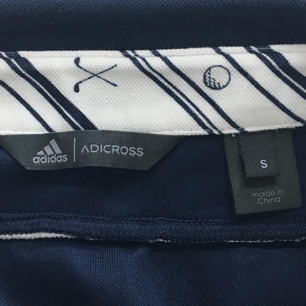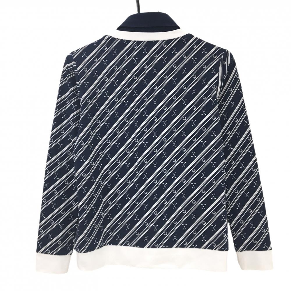 アディダス 長袖ポロシャツ ネイビー×白 斜めストライプ ゴルフクラブ総柄 ゴルフボール総柄 ADICROSS レディース S ゴルフウェア adidas