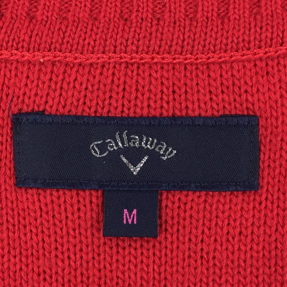 【美品】キャロウェイ ニットベスト レッド×ネイビー Vネック ケーブル編み レディース M ゴルフウェア Callaway