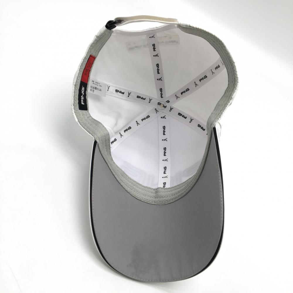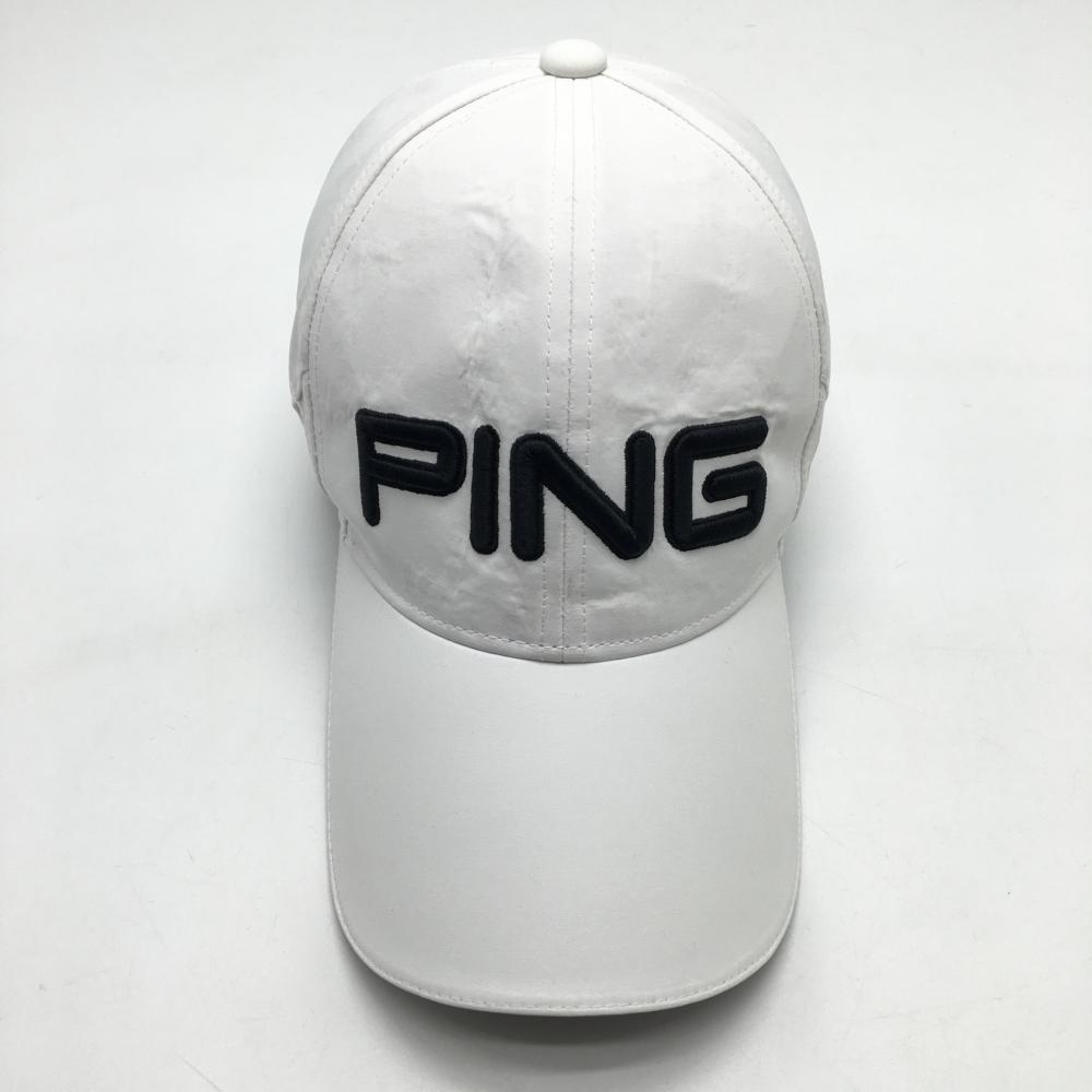 【美品】ピン キャップ 白×黒 立体ロゴ ONE SIZE FITS ALL ゴルフウェア PING