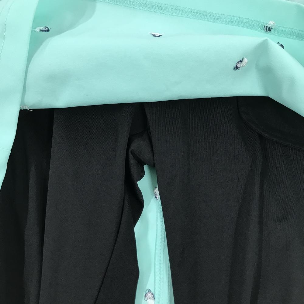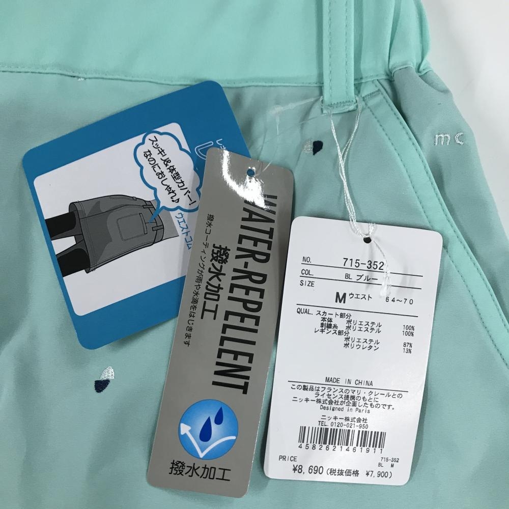 【新品】マリクレール レギンス付スカート ライトグリーン×黒 刺しゅう総柄 ストレッチ 撥水 レディース M ゴルフウェア marie claire