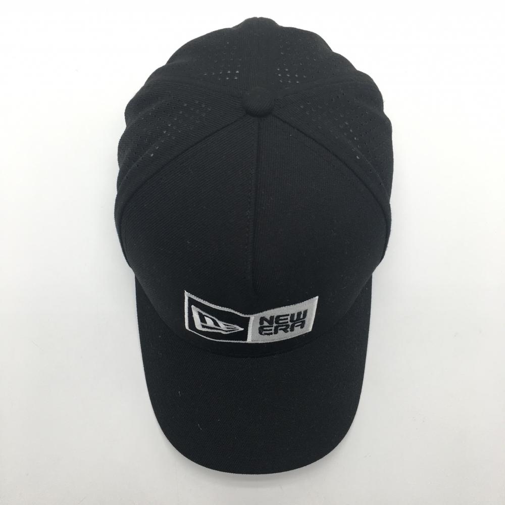 【超美品】ニューエラ キャップ 黒×白 一部パンチング穴 ロゴ刺しゅう ゴルフウェア New Era
