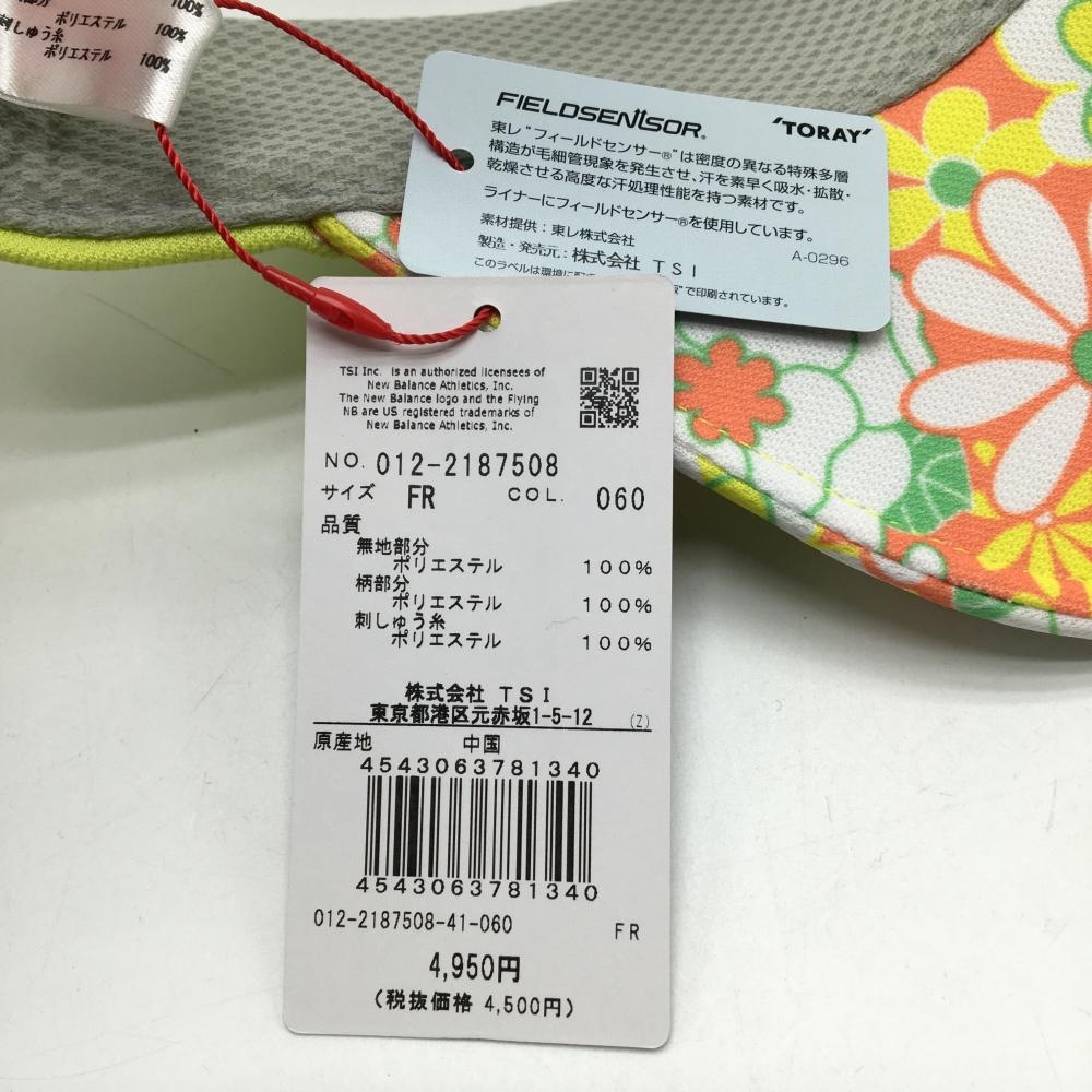 【新品】ニューバランスゴルフ サンバイザー ライトグリーン×オレンジ つば花柄 レディース FR ゴルフウェア New Balance