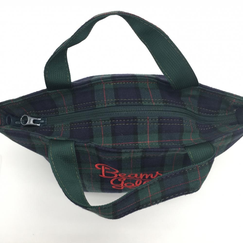 【超美品】ビームスゴルフ カートバッグ グリーン×ネイビー チェック 内側ポケット ゴルフ BEAMS GOLF