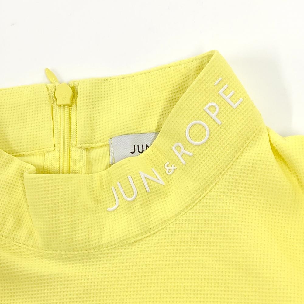 【美品】ジュンアンドロペ 半袖ハイネックシャツ イエロー 袖フリル風 後ジップ レディース M ゴルフウェア サンプル品 JUN&ROPE