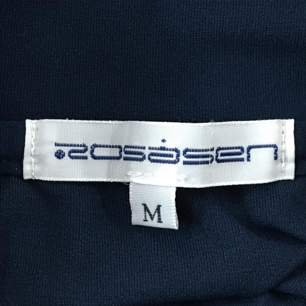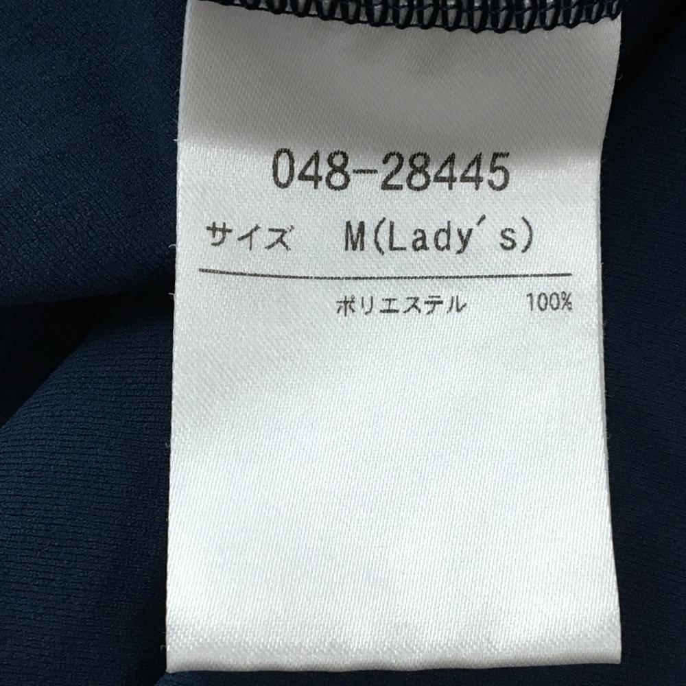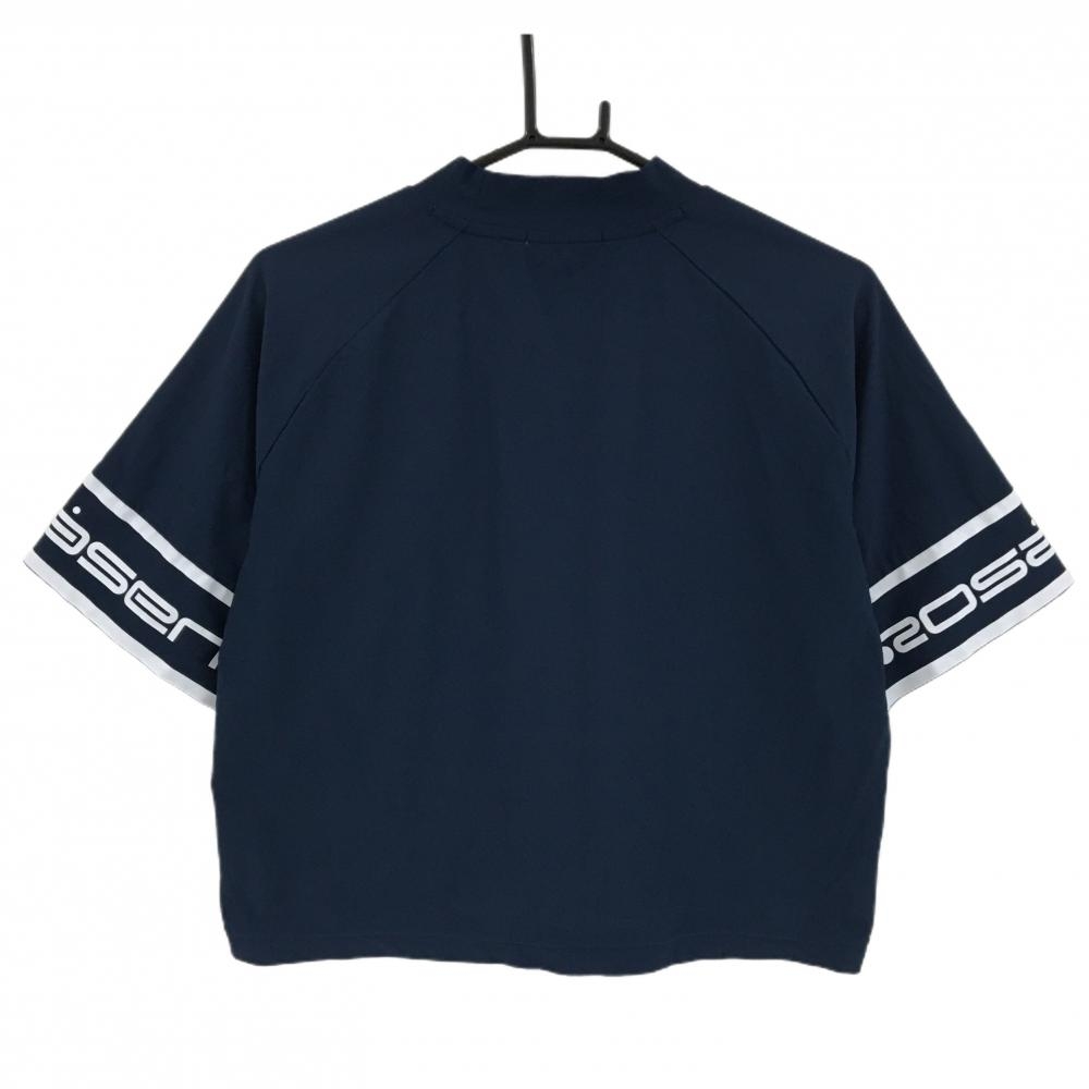 【超美品】ロサーセン 半袖ハイネックシャツ ネイビー×白 クロップド丈 ロゴプリント レディース M ゴルフウェア Rosasen
