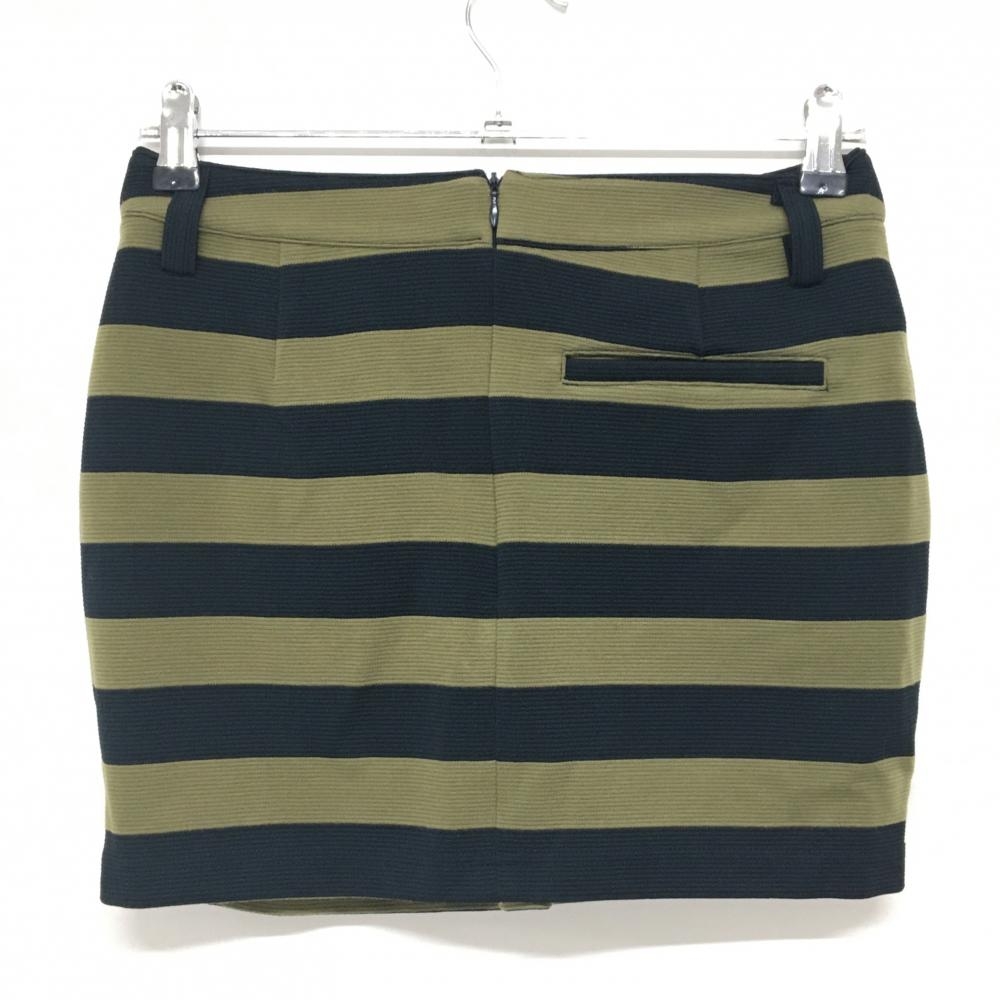 【超美品】エフィカス スカート カーキ×黒 ボーダー レディース 1(S) ゴルフウェア efficace