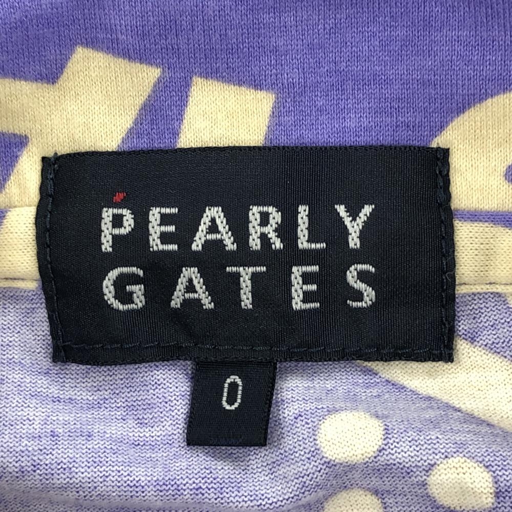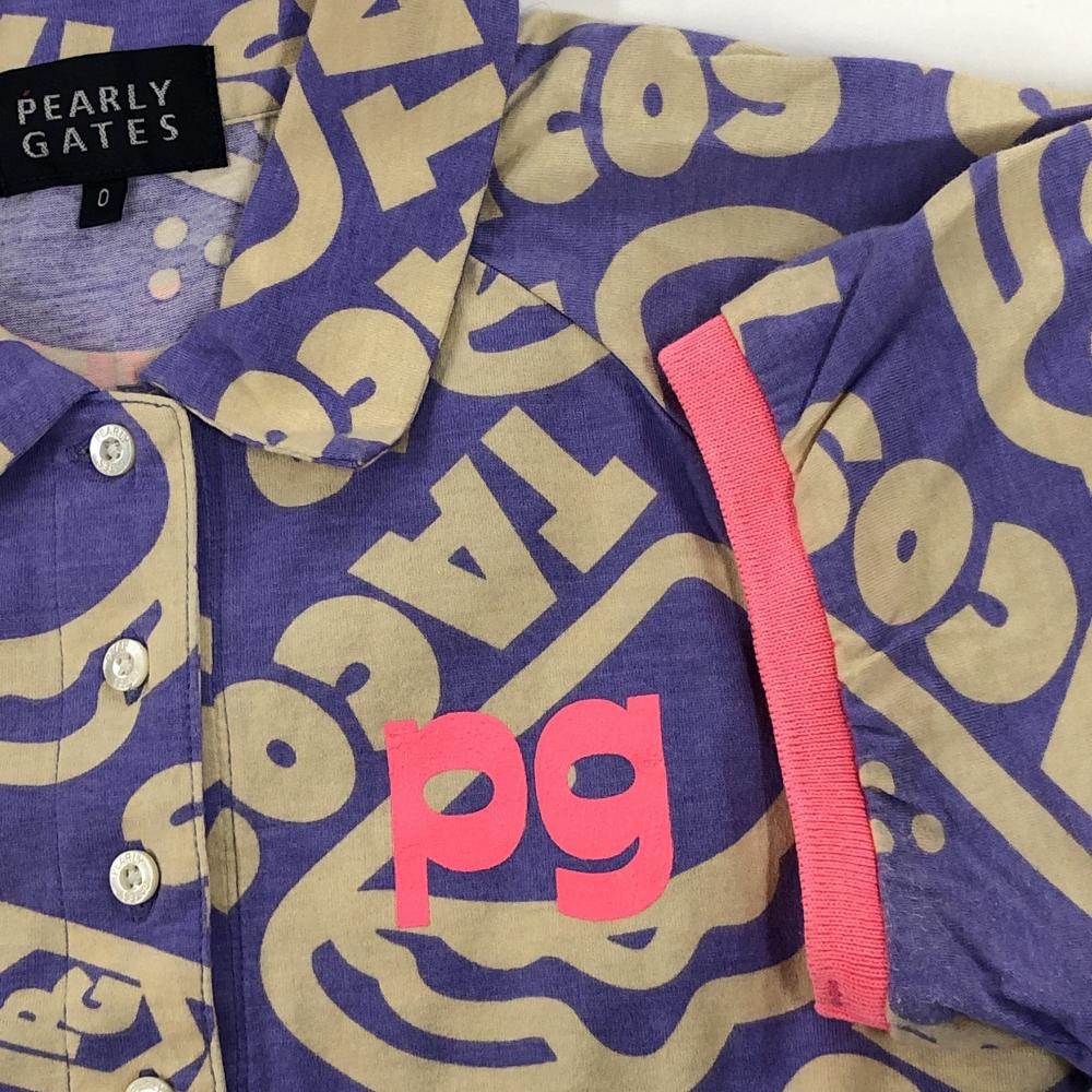 【美品】パーリーゲイツ 半袖ポロシャツ ライトパープル×ベージュ 総柄 袖口蛍光ピンク レディース 0(S) ゴルフウェア PEARLY GATES