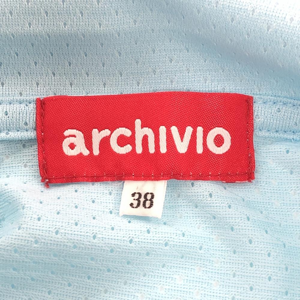 【美品】アルチビオ 半袖ポロシャツ ライトブルー×白 メッシュ生地 袖リボン フロントロゴ レディース 38(M) ゴルフウェア archivio