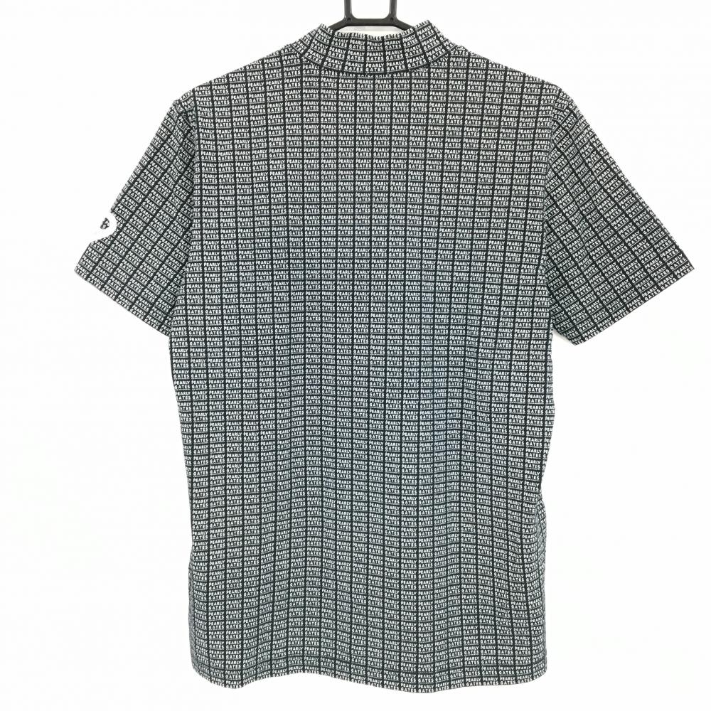 【超美品】パーリーゲイツ 半袖ハイネックシャツ 黒×白 ロゴ総柄 メンズ 5(L) ゴルフウェア PEARLY GATES