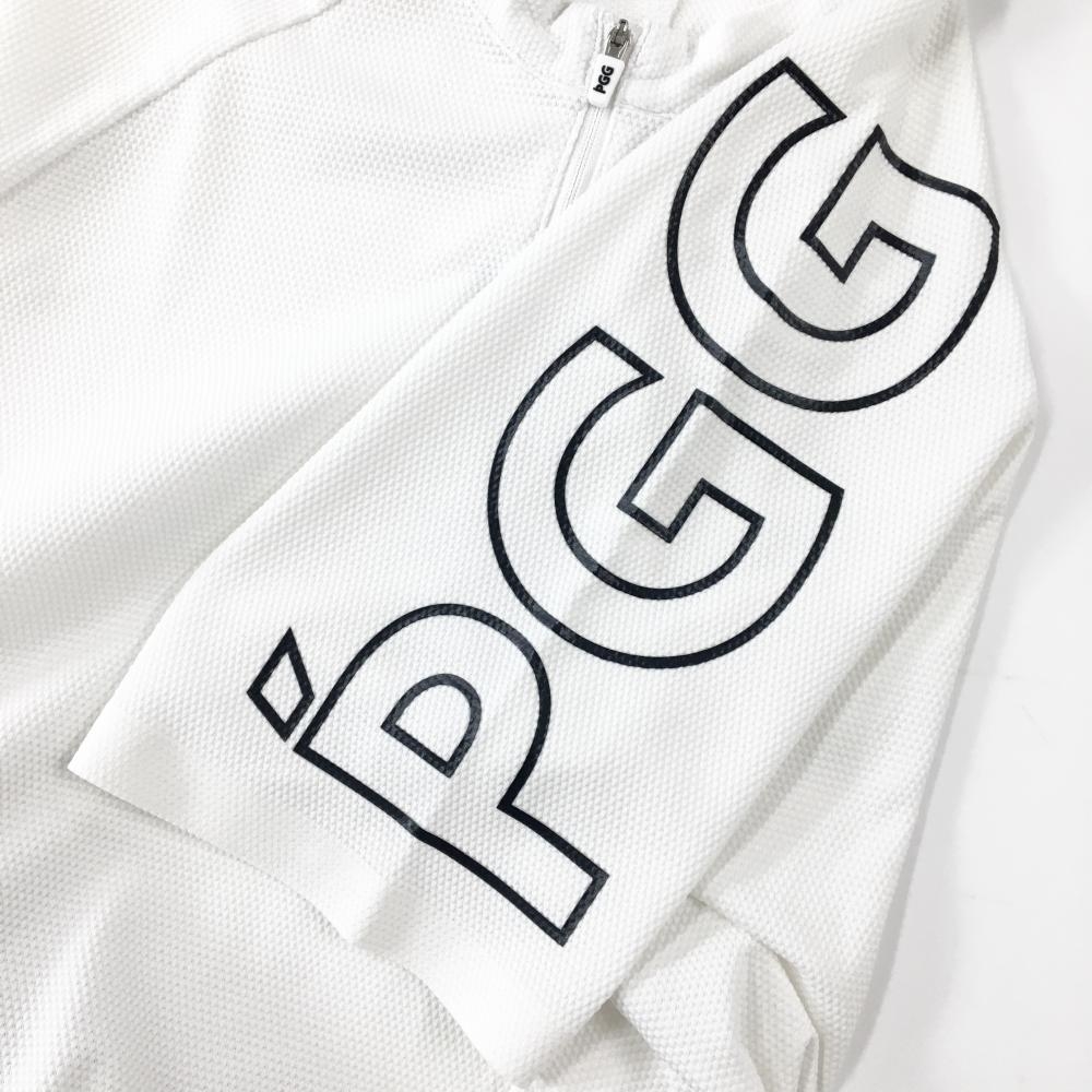 【超美品】PGGパーリーゲイツ 半袖シャツ 白×黒 織生地 ハーフジップ メンズ 5(L) ゴルフウェア PEARLY GATES