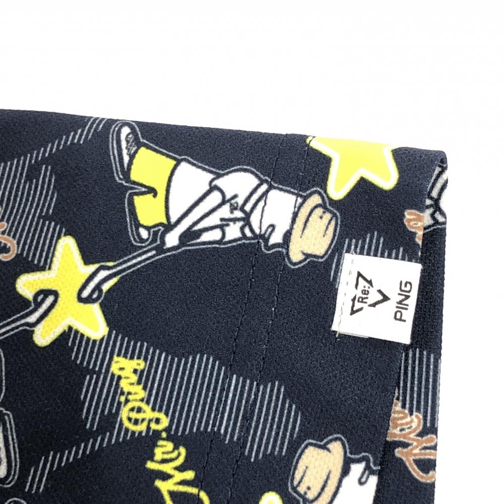 【美品】ピン 半袖ポロシャツ ネイビー×イエロー Mr.PING・星総柄 ロゴ刺しゅう メンズ M ゴルフウェア 2024年モデル PING