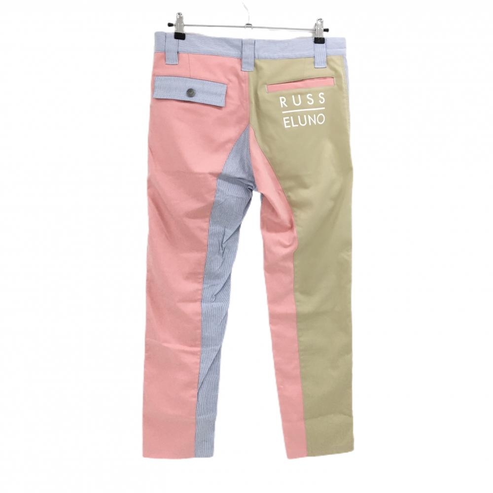 【超美品】ラッセルノ パンツ ライトブルー×白×ピンク 前ストライプ メンズ 5(L) ゴルフウェア RUSSELUNO