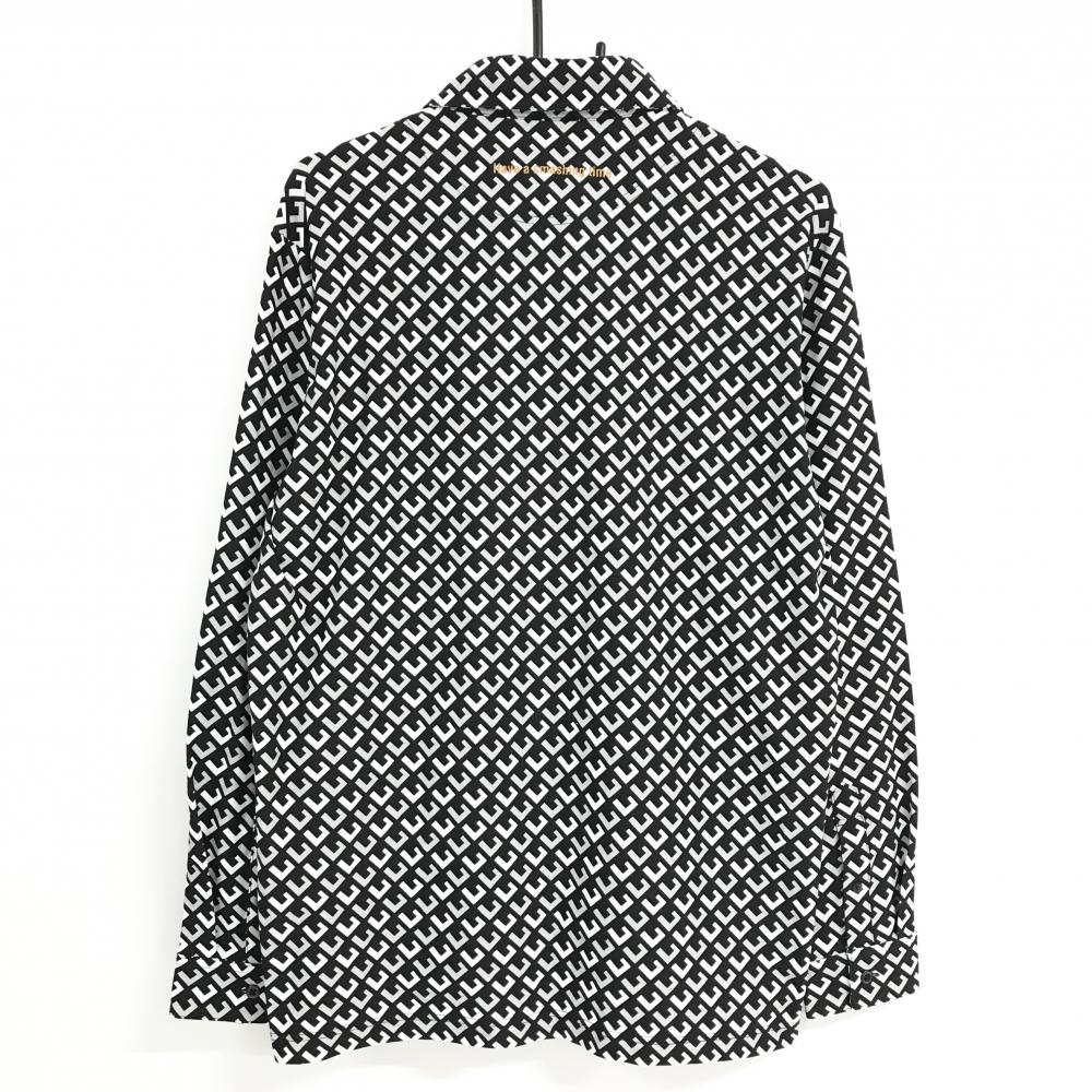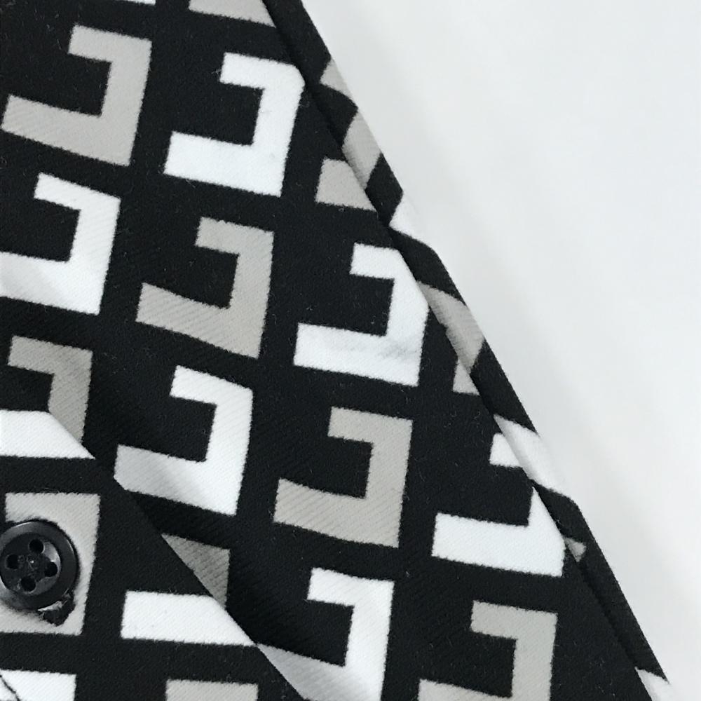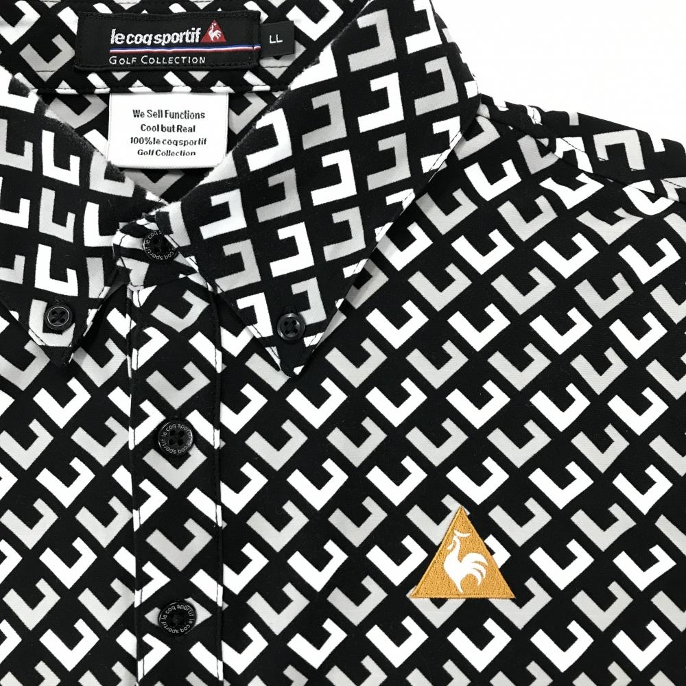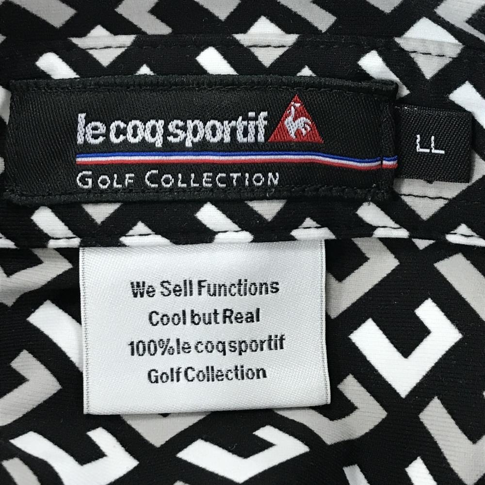 ルコックゴルフ 長袖ポロシャツ 黒×白×ライトグレー 総柄 ボタンダウン 極微起毛 メンズ LL ゴルフウェア le coq sportif