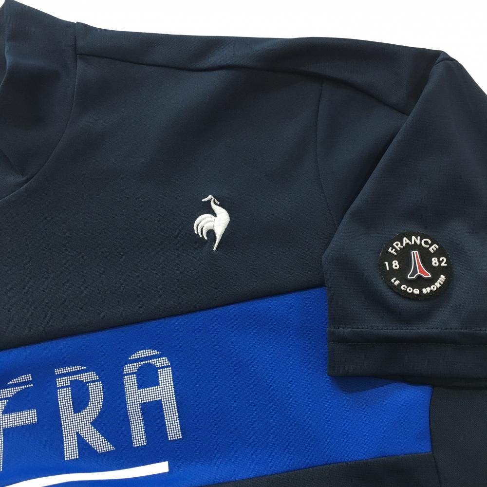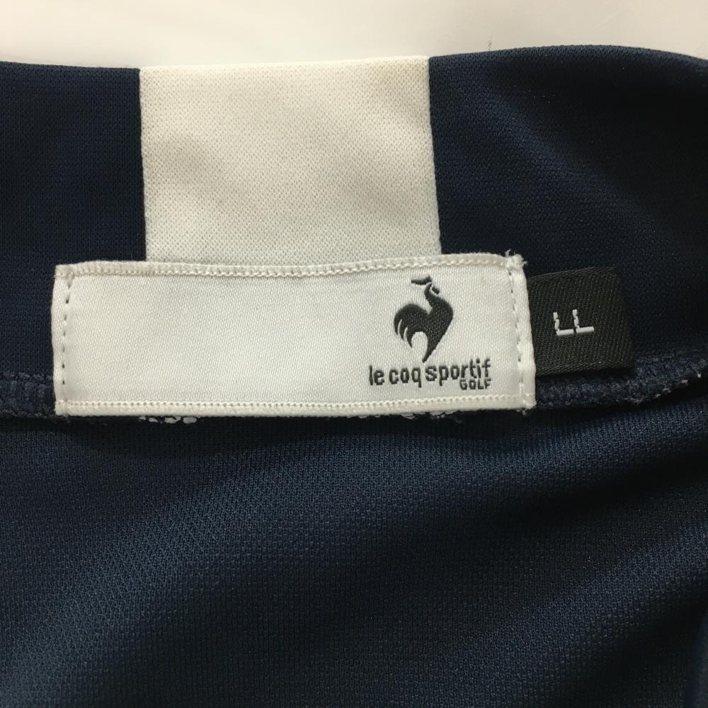 【美品】ルコックゴルフ 半袖ハイネックシャツ ネイビー×ブルー×白 胸ロゴ メンズ LL ゴルフウェア 2024年モデル le coq sportif