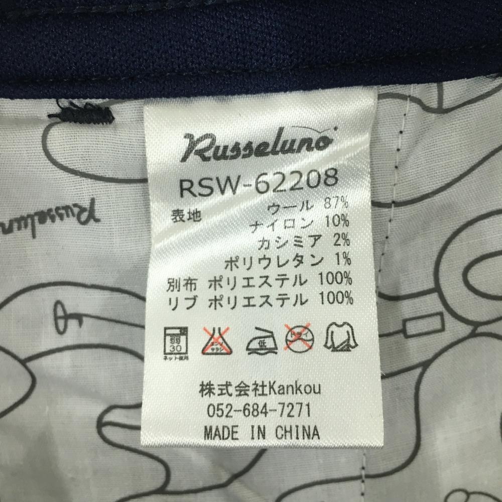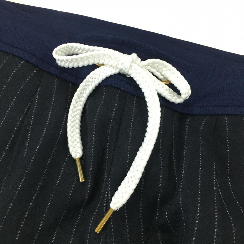 【美品】ラッセルノ 半端丈パンツ ネイビー×白 ストライプ ウール混 レディース 1(M) ゴルフウェア RUSSELUNO