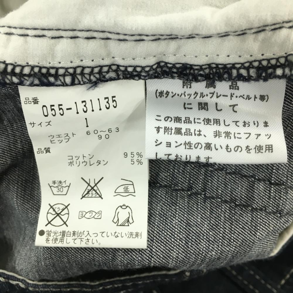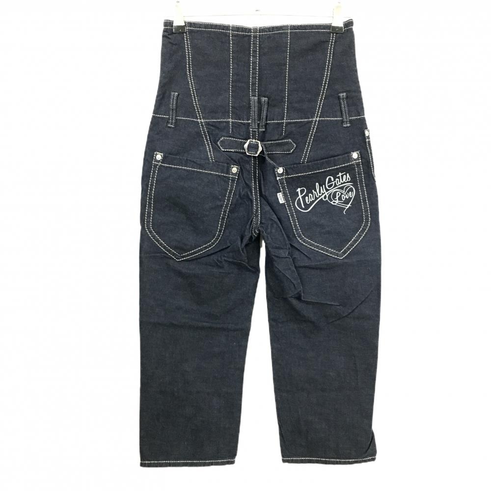【美品】パーリーゲイツ ハイウエスト半端丈パンツ ネイビー デニム ステッチ レディース 1(M) ゴルフウェア PEARLY GATES