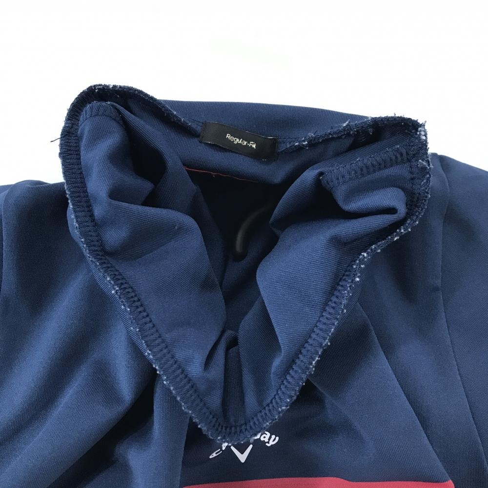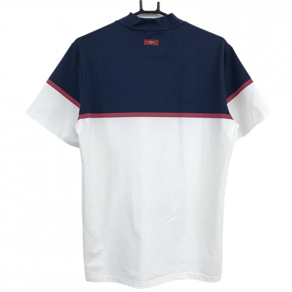 【美品】キャロウェイ レッドレーベル 半袖ハイネックシャツ 白×ネイビー ブロッキング ストレッチ メンズ L ゴルフウェア Callaway