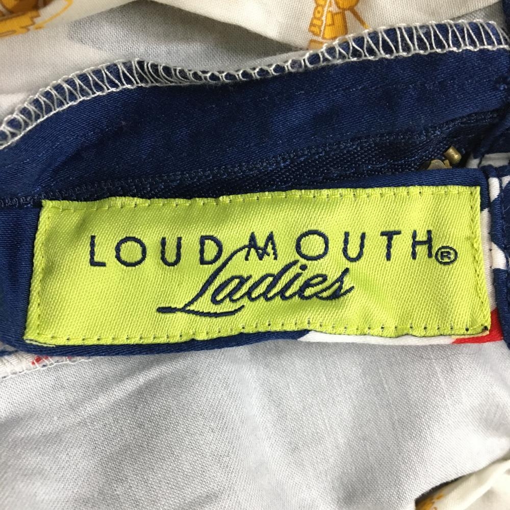 【美品】ラウドマウス パンツ ネイビー×白 総柄 国旗 星柄 レディース US-2 ゴルフウェア LOUDMOUTH