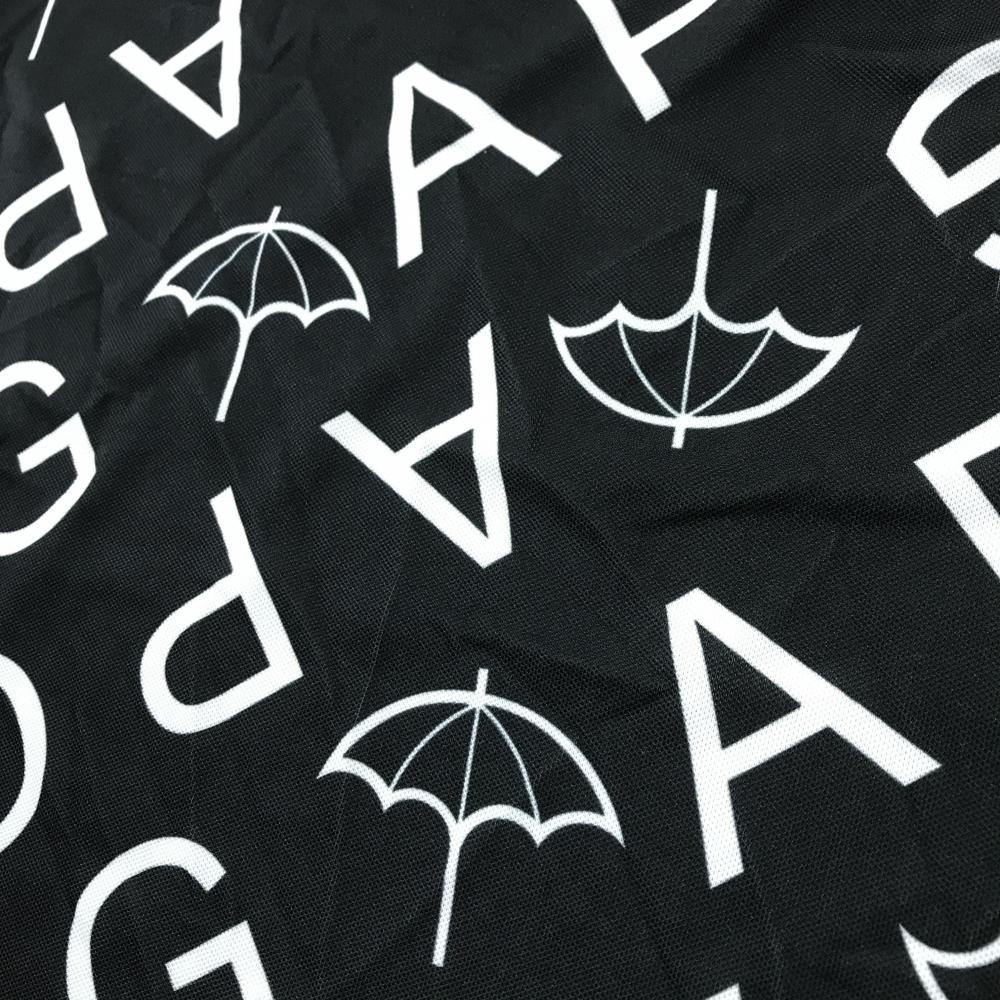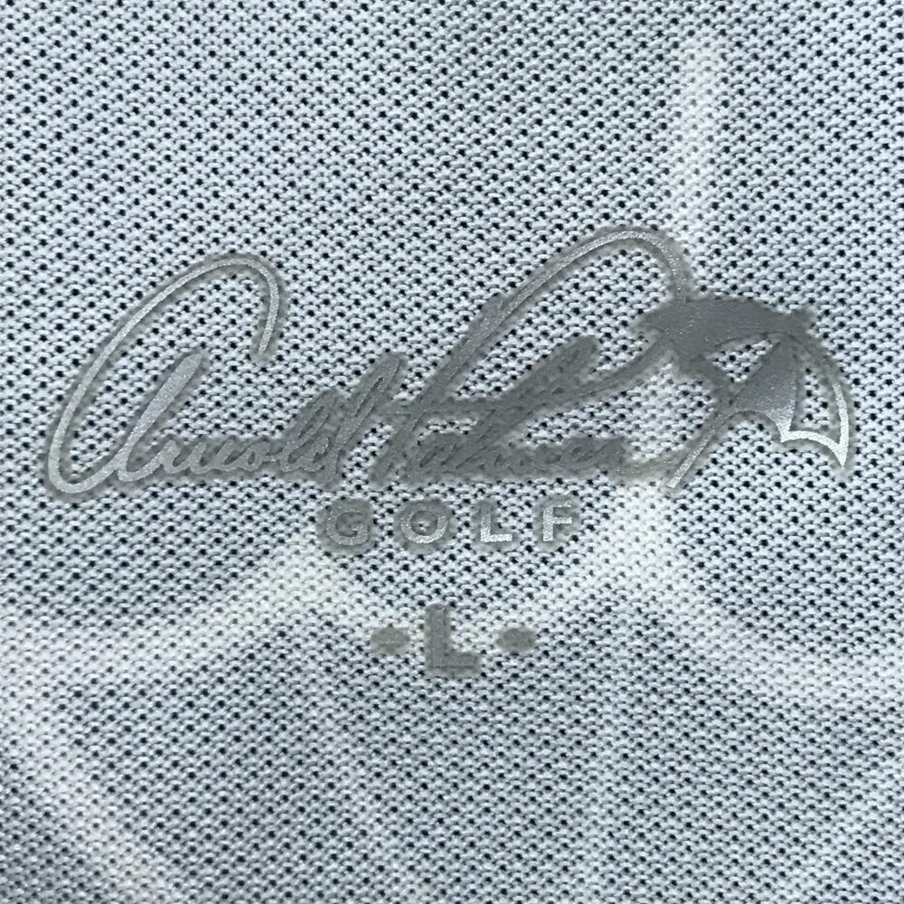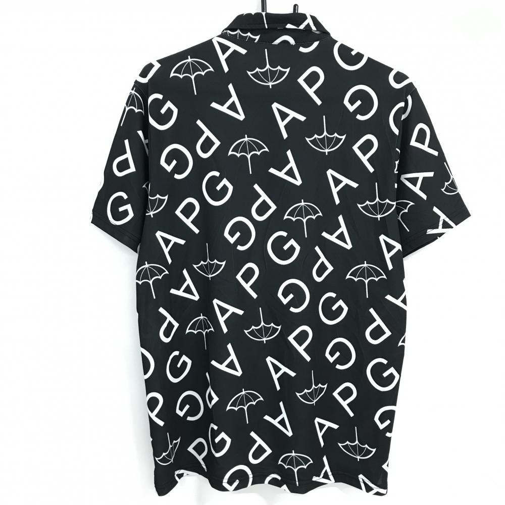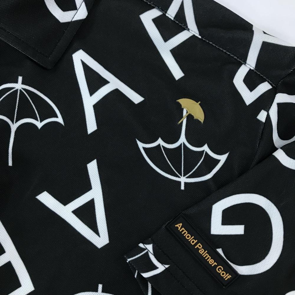 【美品】アーノルドパーマー 半袖ポロシャツ 黒×白 ロゴ・パラソル総柄 メンズ L ゴルフウェア