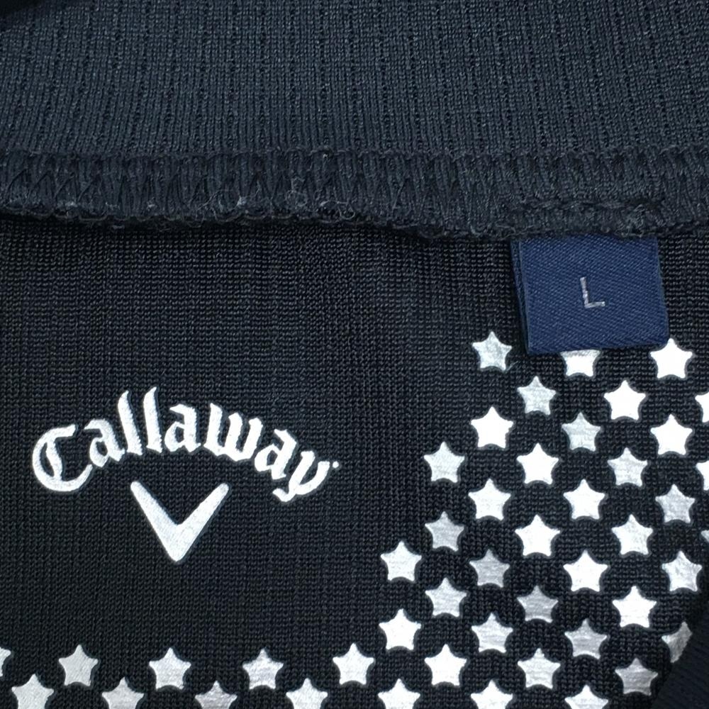 【超美品】キャロウェイ 半袖ハイネックシャツ 黒 凹凸ロゴ メンズ L ゴルフウェア Callaway