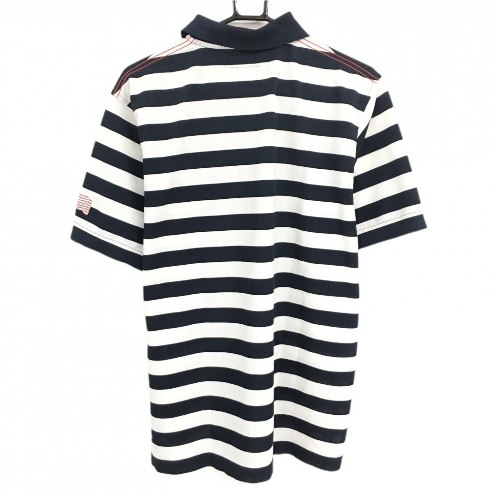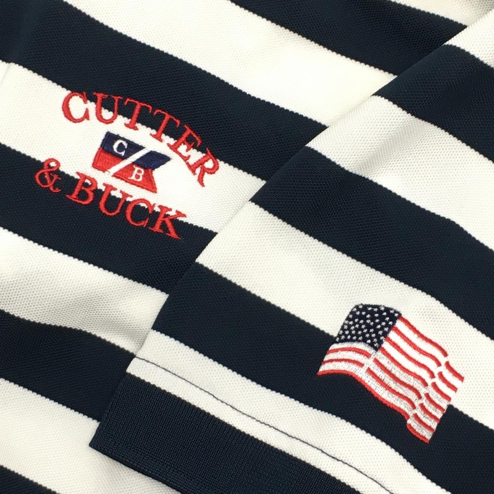 カッターアンドバック 半袖ポロシャツ ネイビー×白 ボーダー ロゴ刺しゅう メンズ L ゴルフウェア CUTTER&BUCK