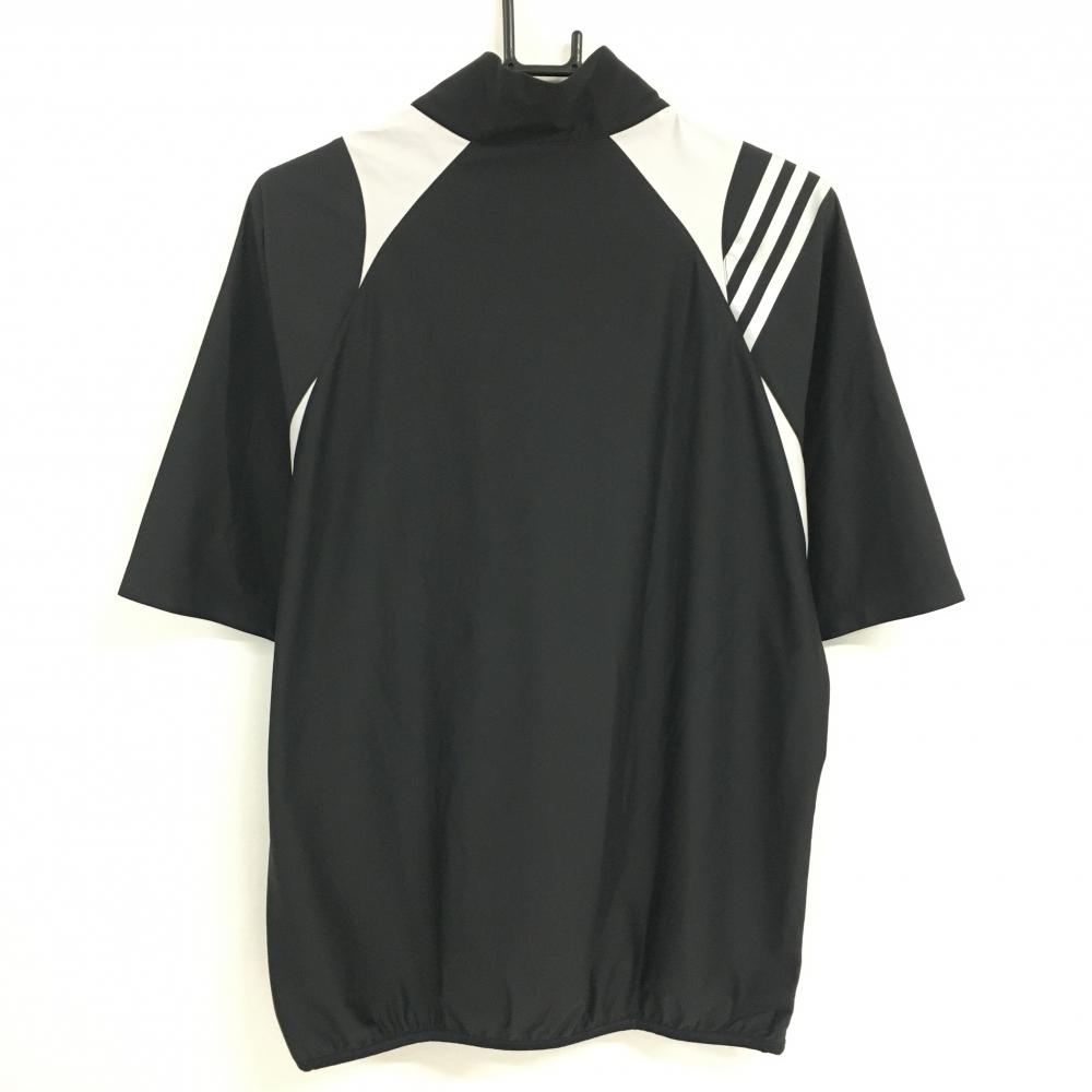 【美品】アディダス 半袖ブルゾン 黒×ライトグレー ハーフジップ 肩3ライン 裾ジップ メンズ L/G ゴルフウェア adidas
