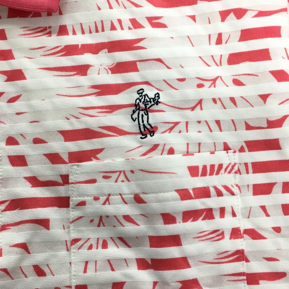 【美品】アシュワース 半袖ポロシャツ ピンク×白 リーフ総柄 ボーダー メンズ L ゴルフウェア ASHWORTH