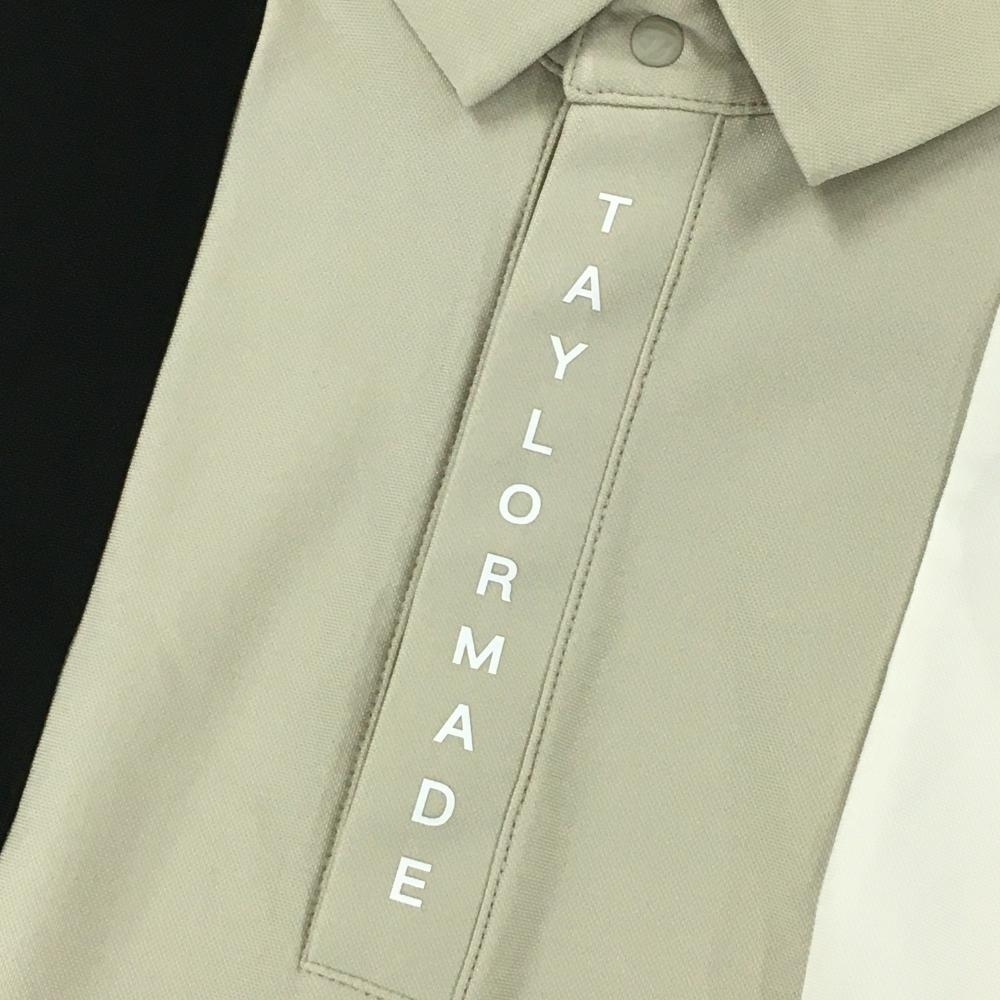 【超美品】テーラーメイド 半袖ポロシャツ ベージュ×黒 前立て部分ロゴ スナップボタン メンズ O ゴルフウェア TaylorMade